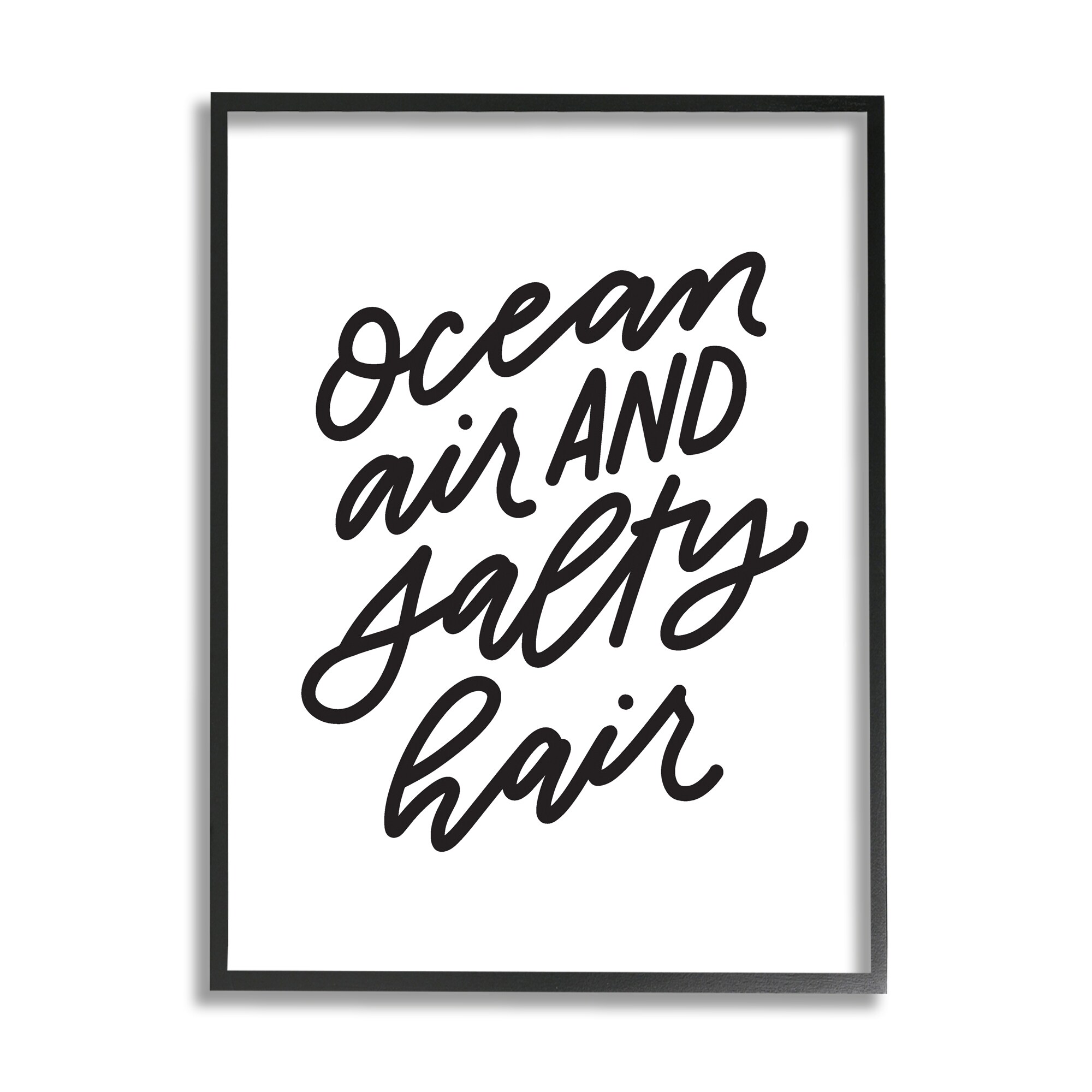 Stupell Industries Ocean Air Salty Hair Beach Lover Calligraphy Framed Wall Art, Design by Leah Bisch - Black