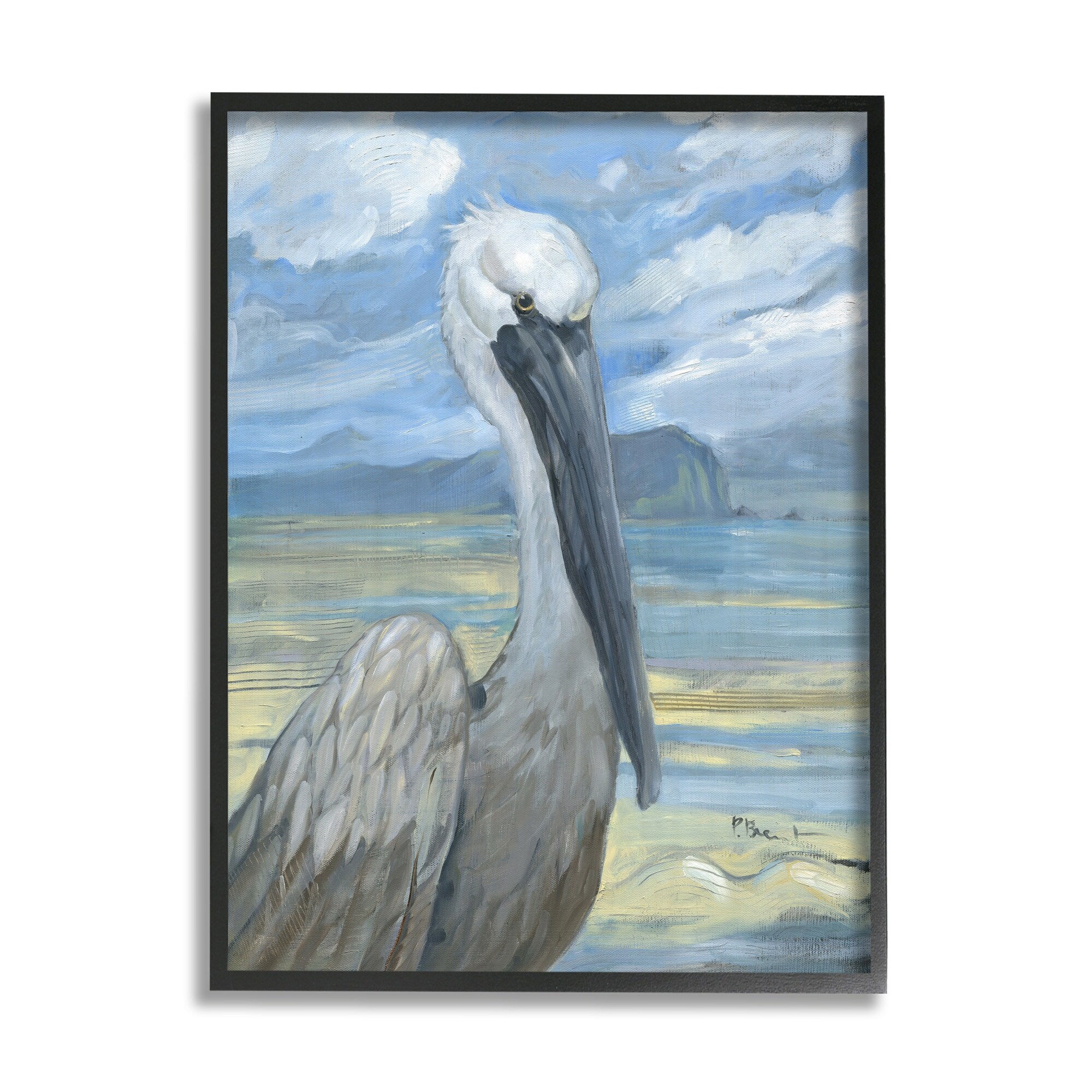 Stupell Salty Pelican Cloudy Coastal beach Framed Giclee Texturized Wall Art, Design By Paul Brent