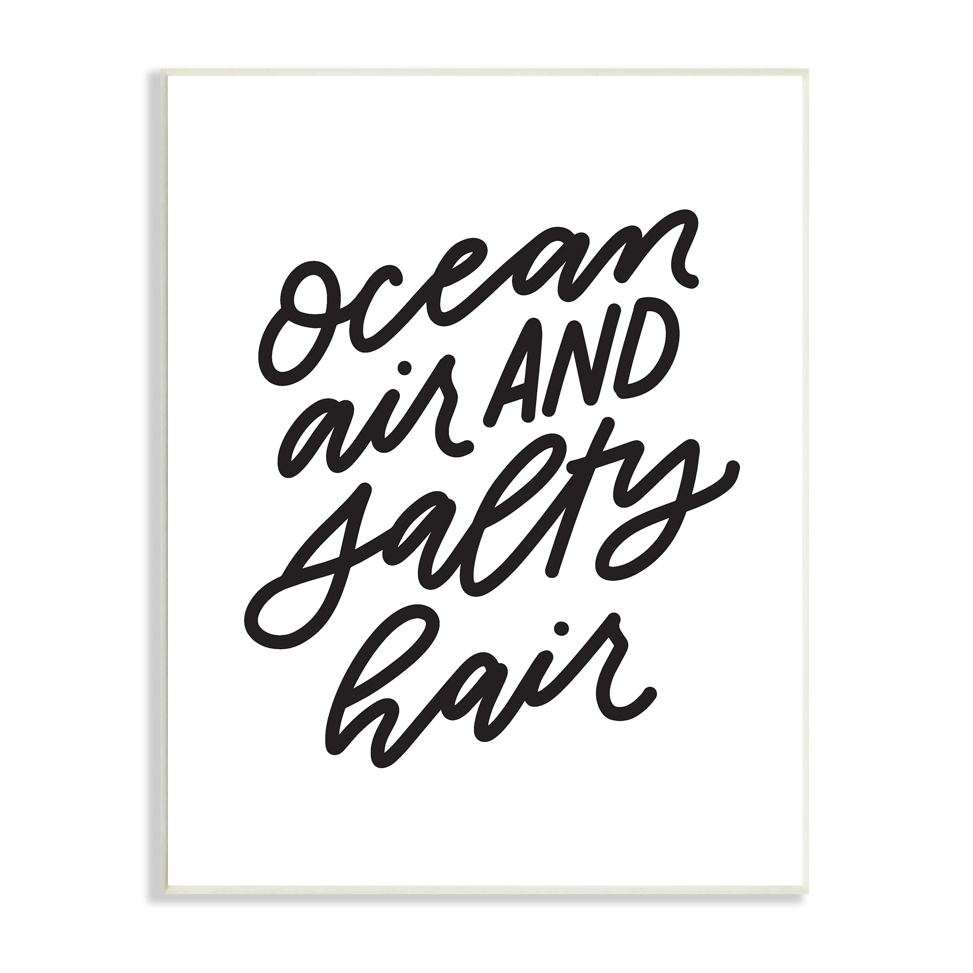 Stupell Ocean Air Salty Hair Beach Lover Calligraphy Wood Wall Art, Design by Leah Bisch - Black