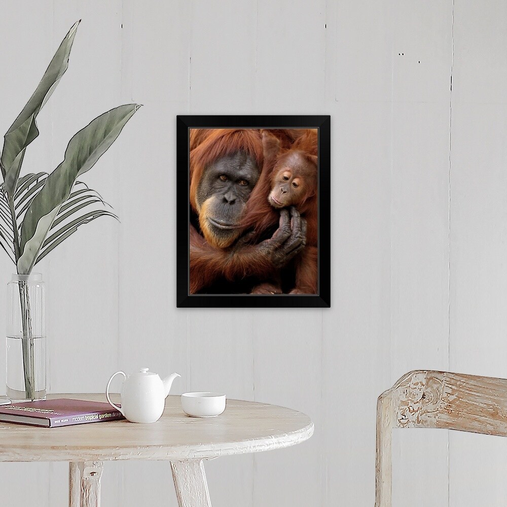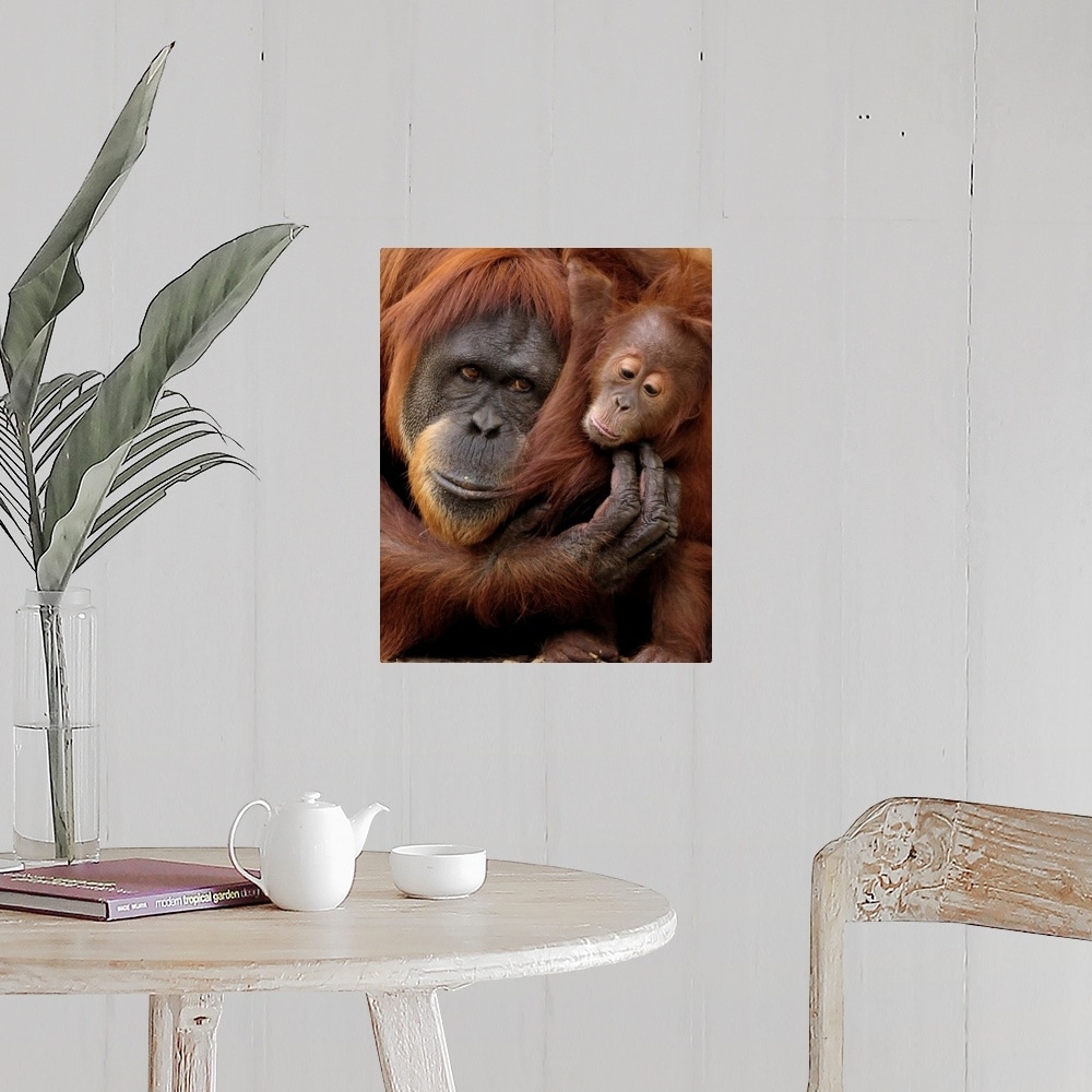 "A mother and baby orangutan share a hug." Poster Print - Multi
