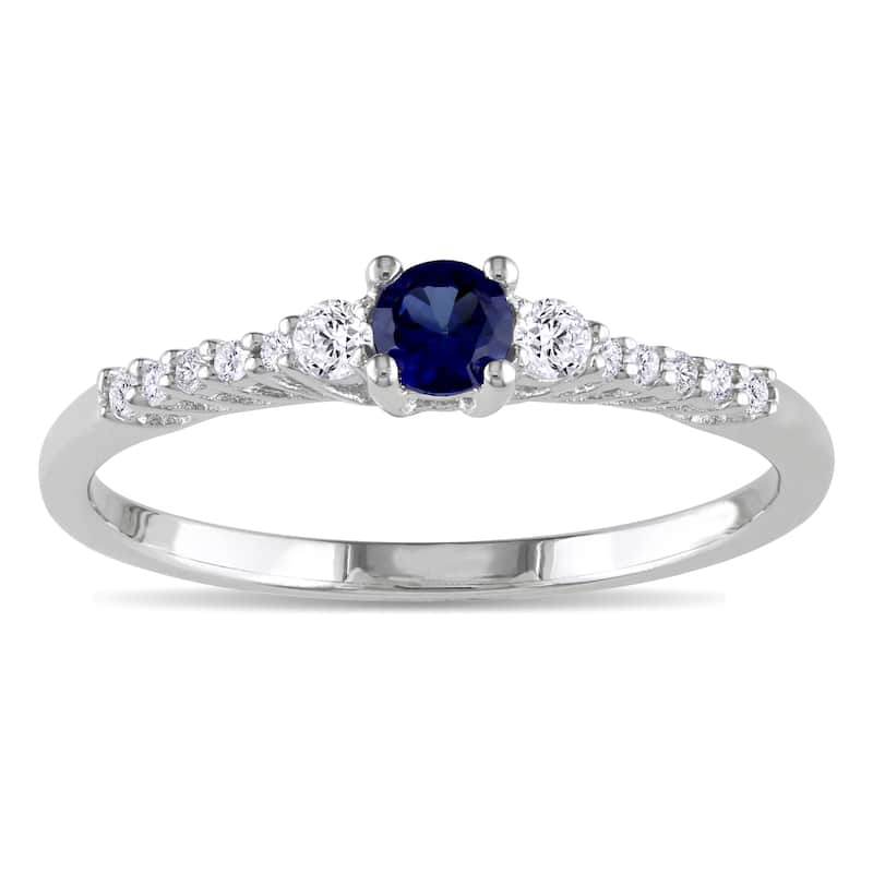 Miadora Sterling Silver Created Blue and White Sapphire and Diamond Accent Ring