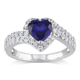 Miadora Sterling Silver Created White and Blue Sapphire Heart Halo Crossover Ring