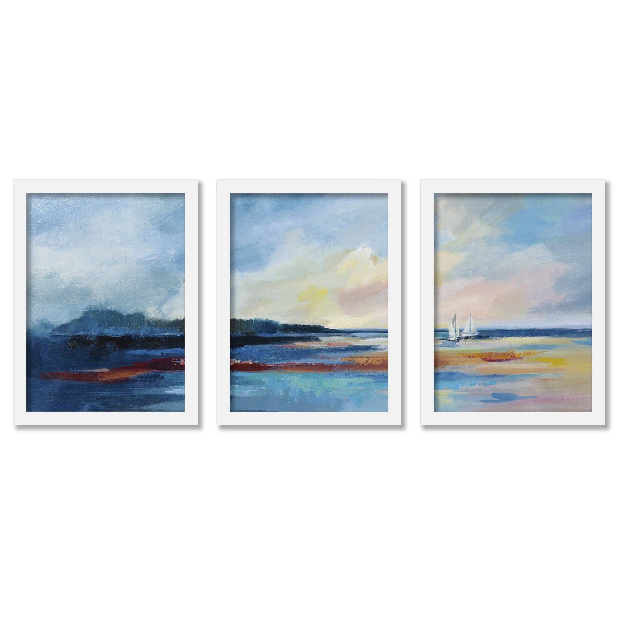 Ultramarine Sea and Sky Light Silvia Vassileva. Contemporary - 3 Piece Framed Gallery Art Set