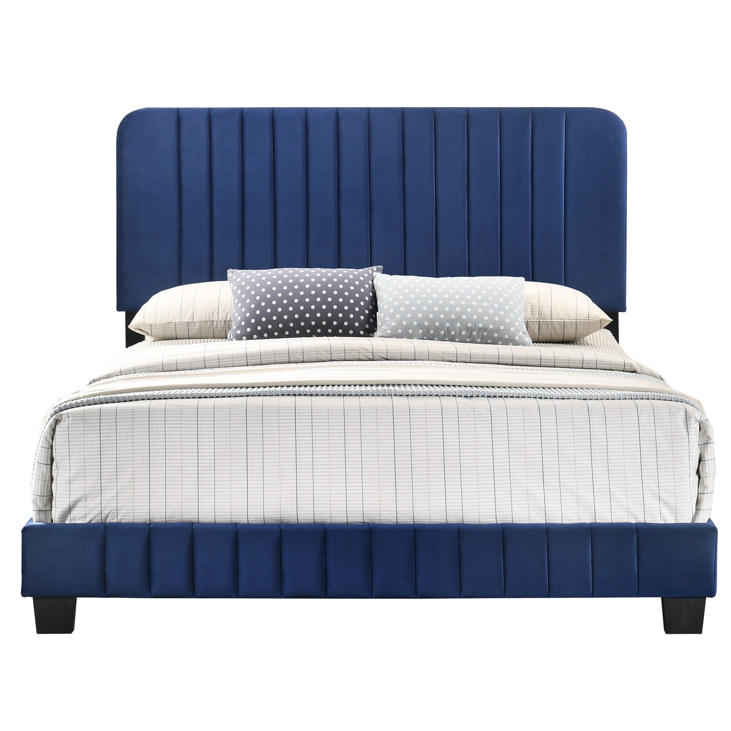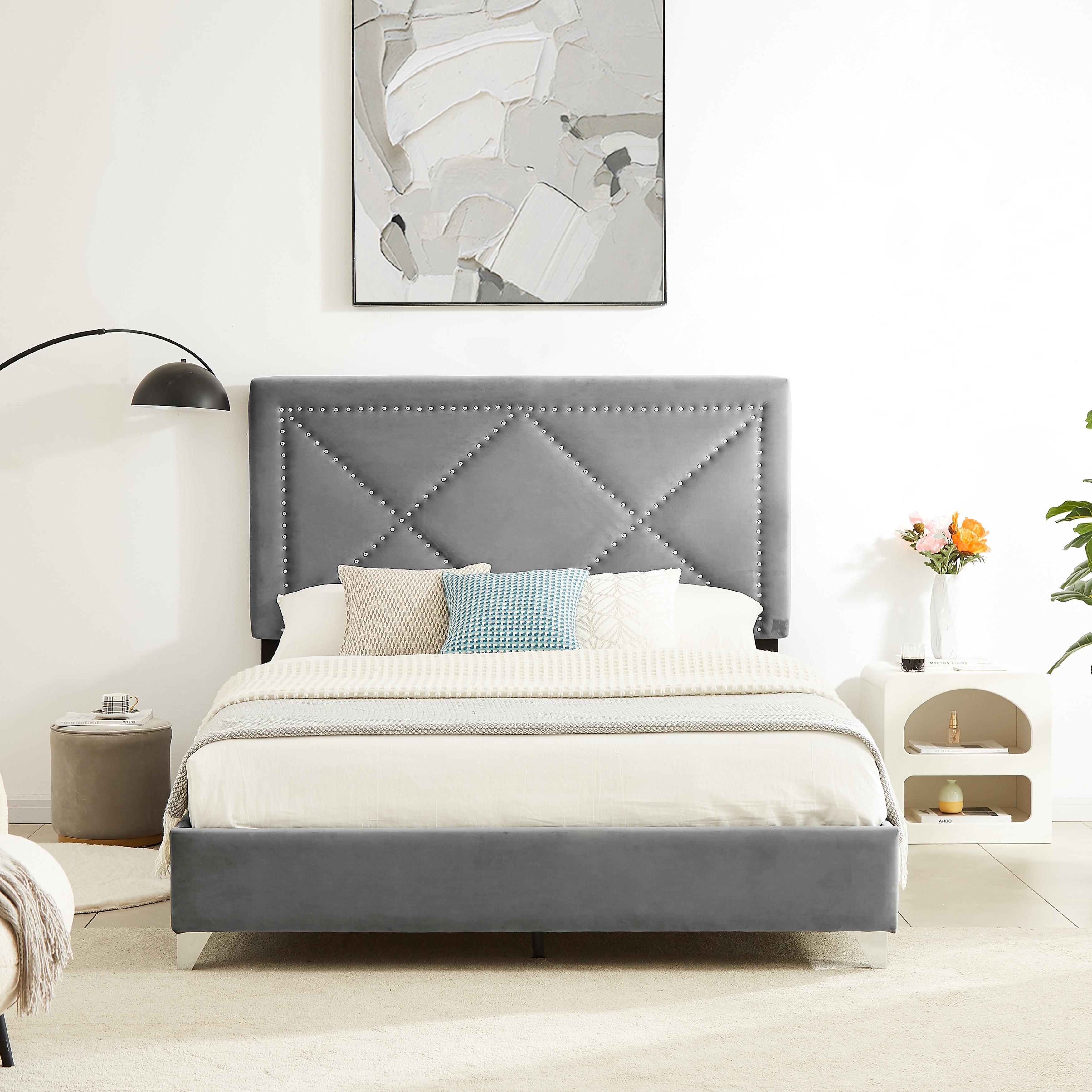 Modern Style Velvet Upholstered Platform Bed, Wood Slat Support