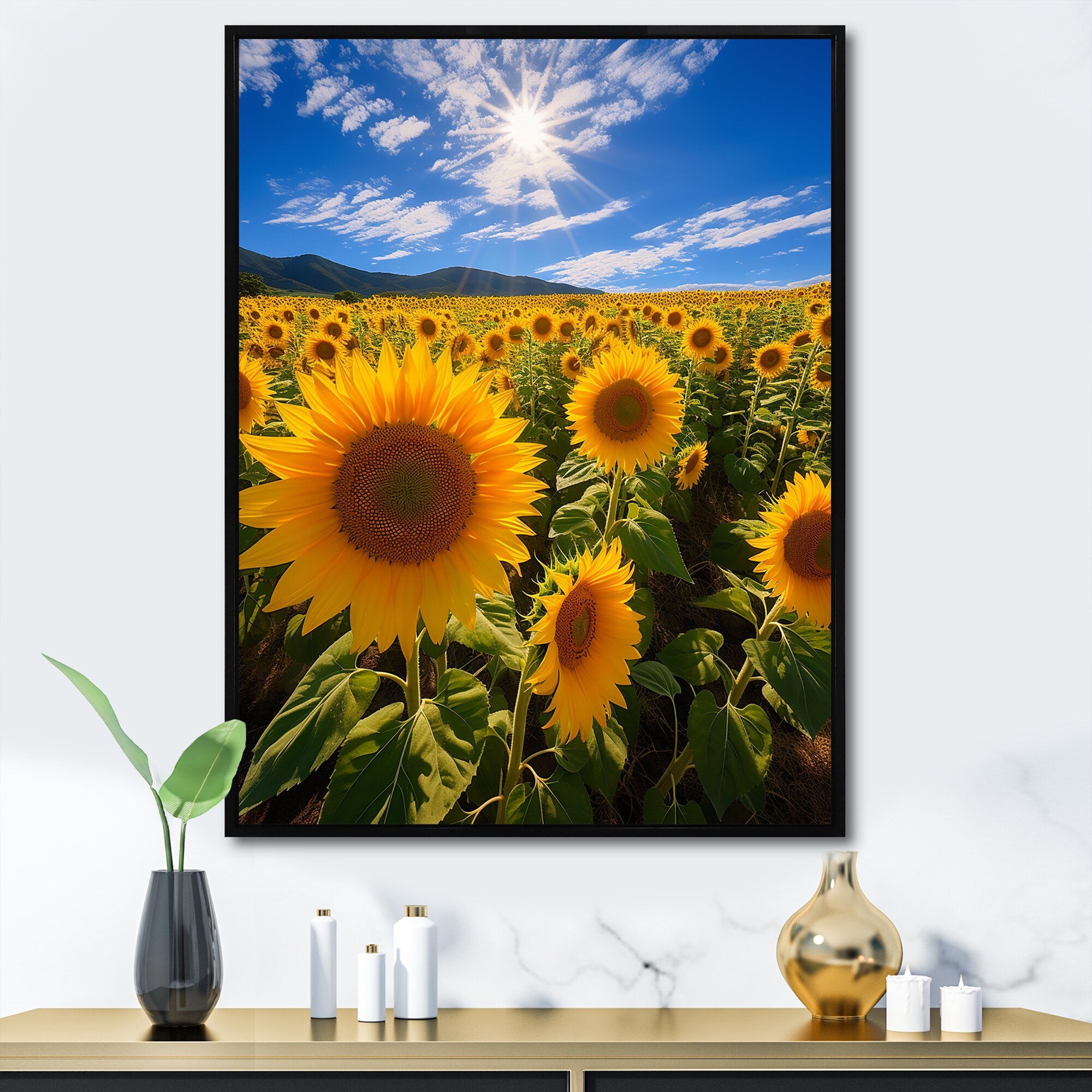 Designart "Spain Sunflower Fields Heat of Inland III" Spain Framed Canvas Print