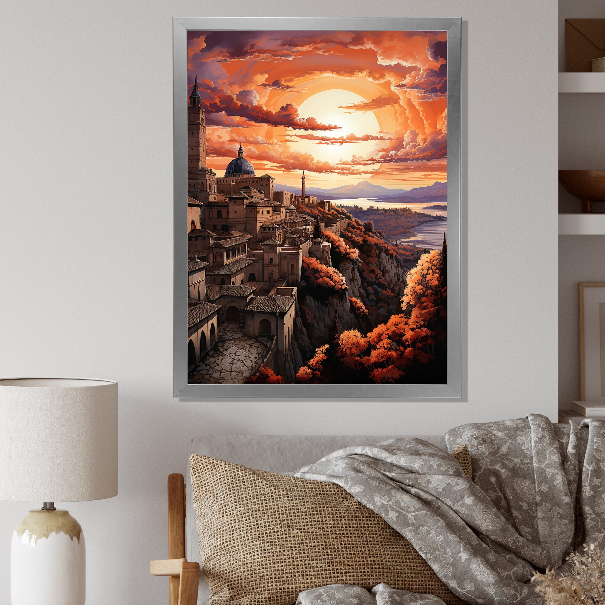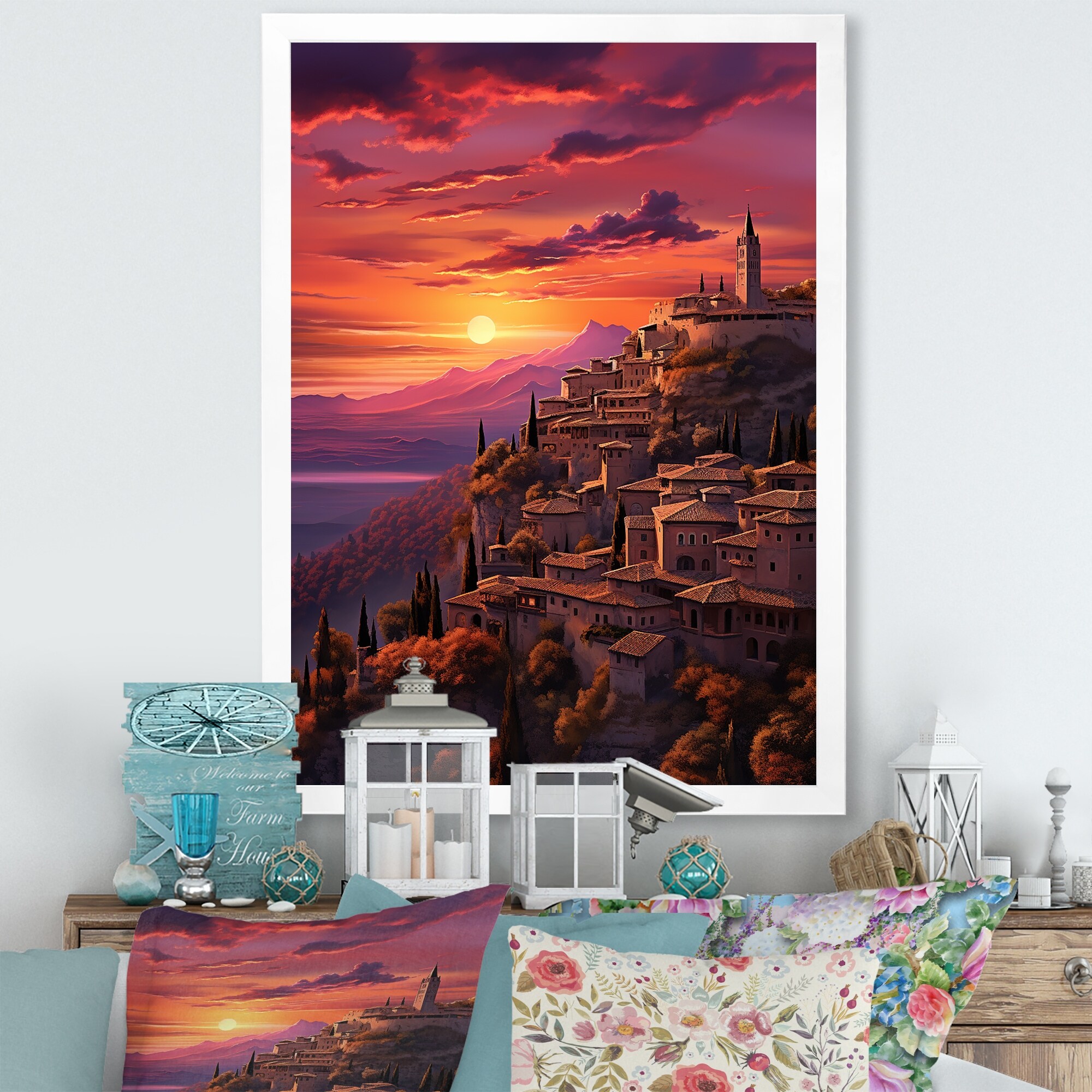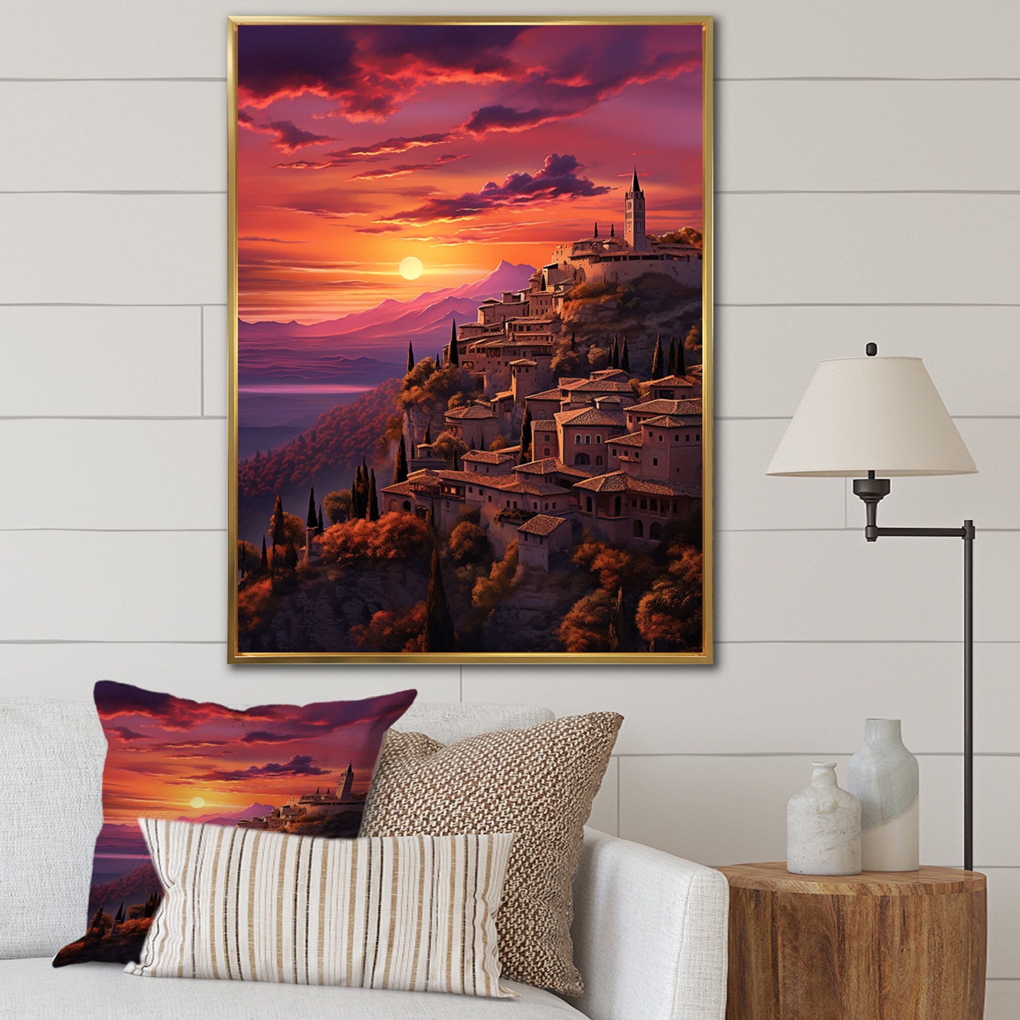Designart "Spain Sunset Over the Alhambra II" Spain Framed Canvas Wall Art