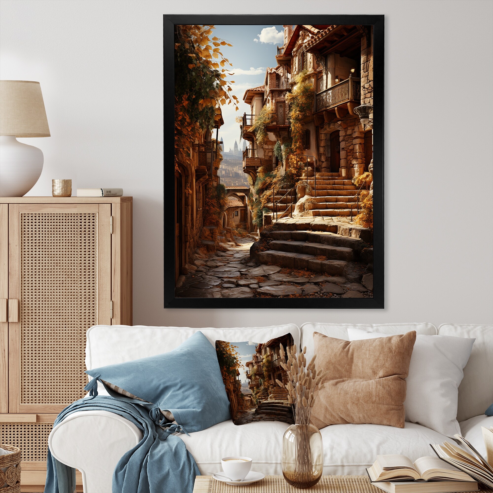 Designart "Spain Medieval Streets of Toledoin II" Spain Framed Canvas Art Print