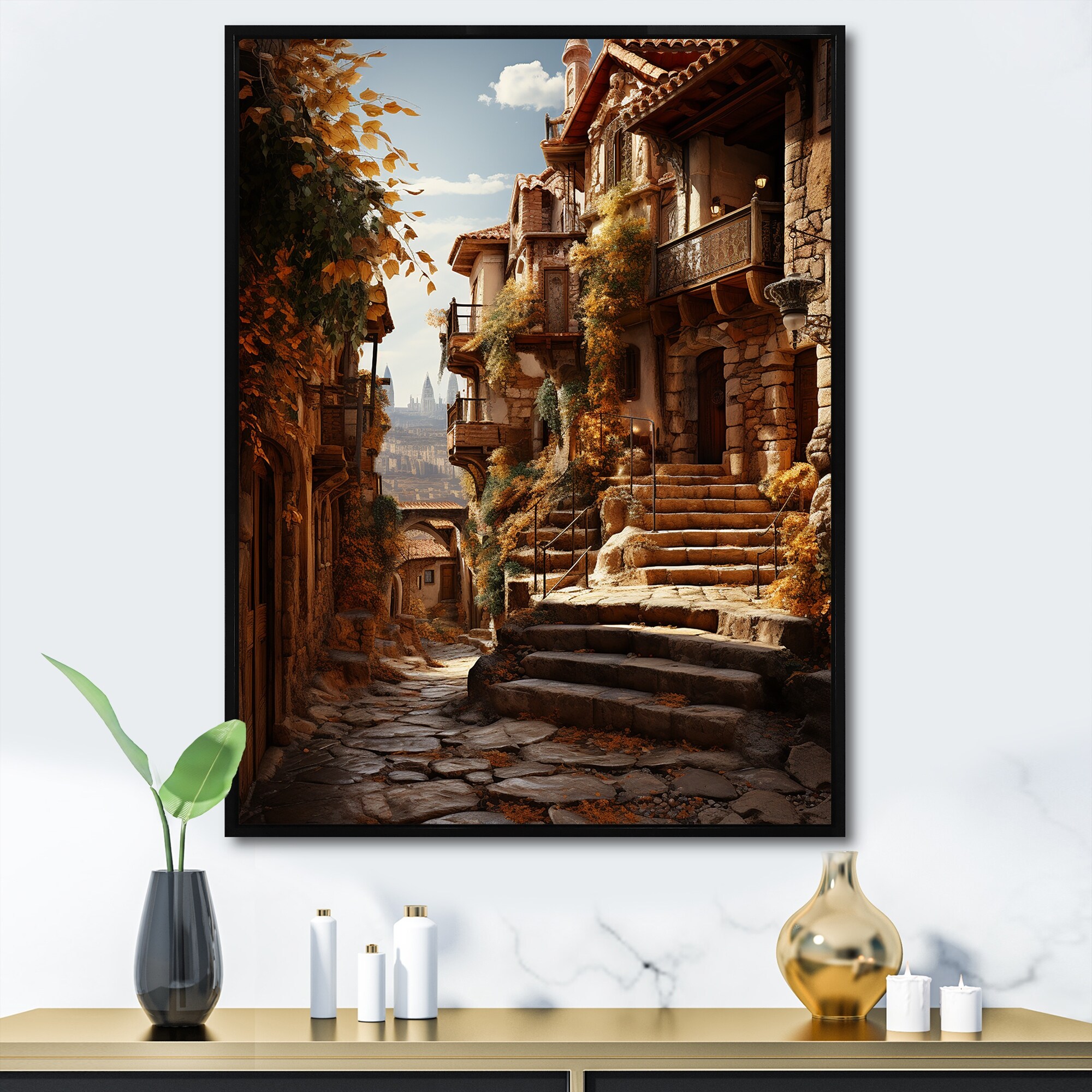 Designart "Spain Medieval Streets of Toledoin III" Spain Framed Canvas Print