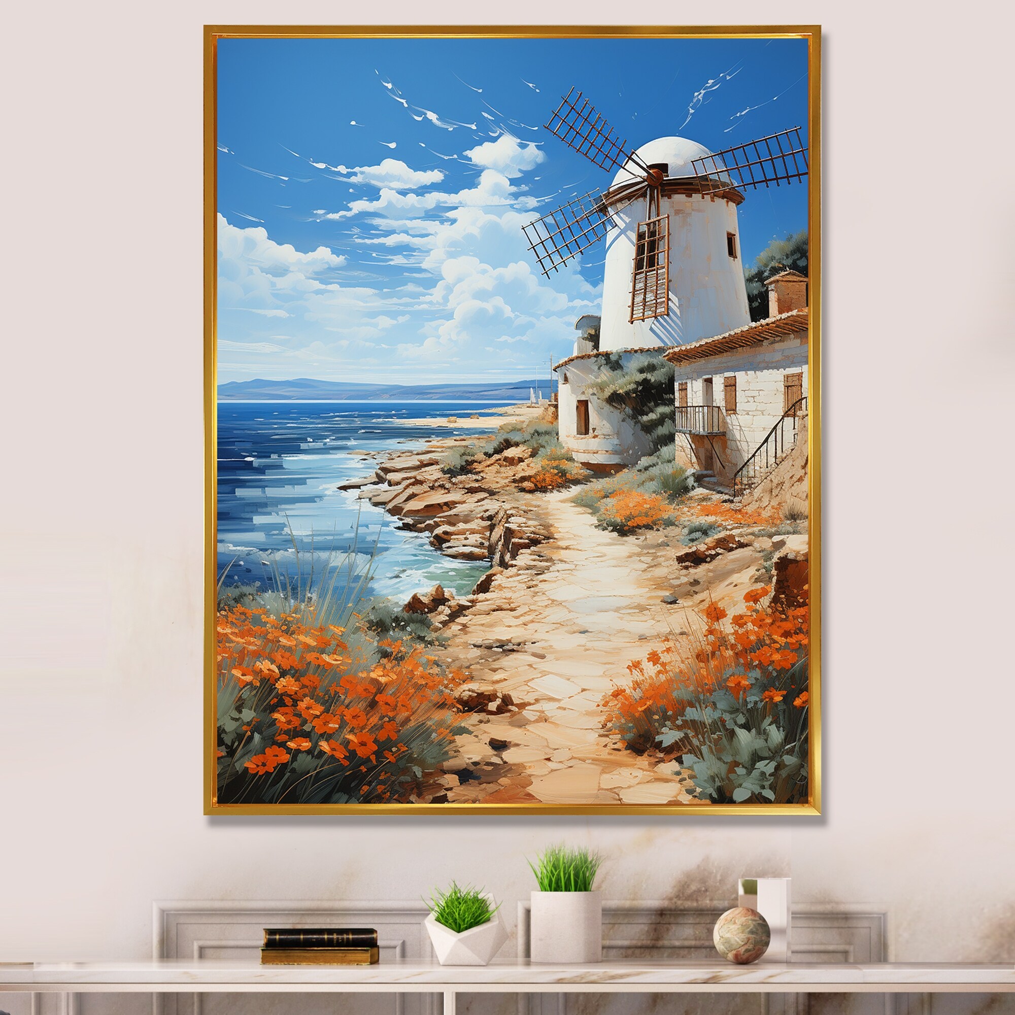 Designart "Spanish Windmills Coastline II" Spain Framed Wall Decor