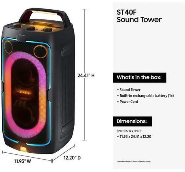 Samsung ST40F Sound Tower Portable Party Speaker with Built-in Battery - Black