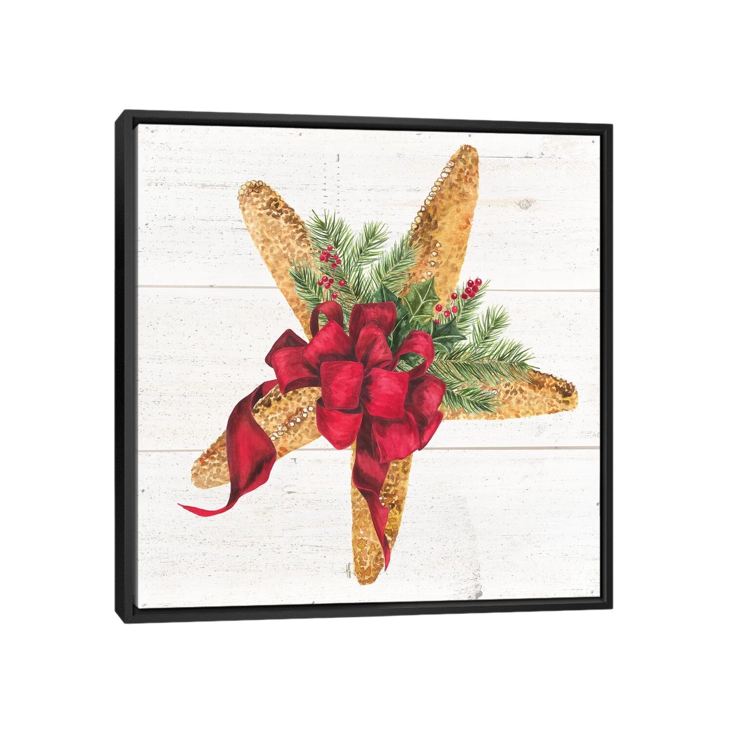 iCanvas "Christmas By the Sea Starfish square" by Tara Reed Framed