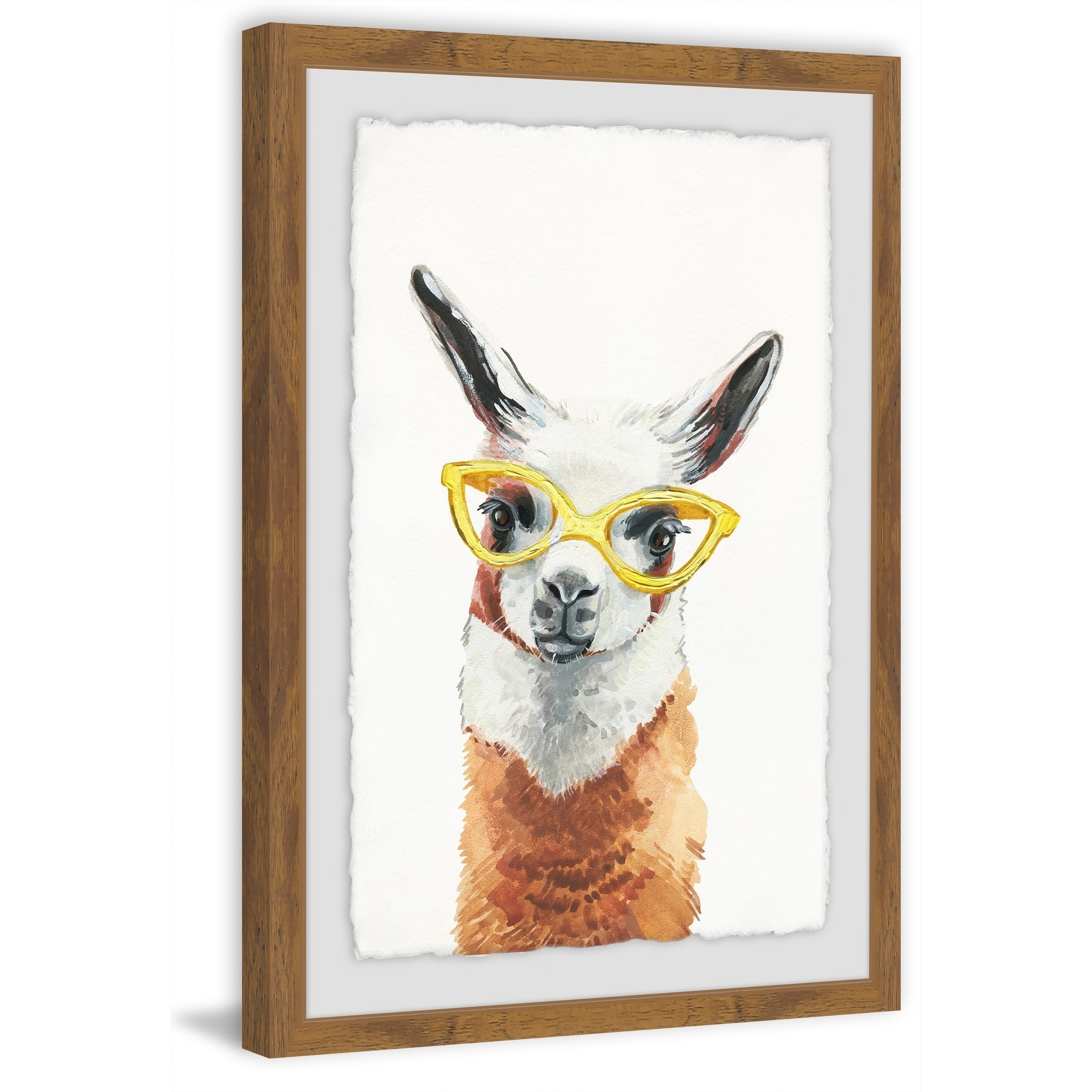 Designart "Cool Llama With Sunglasses Watercolour IV" Animals Llama Framed Art Print