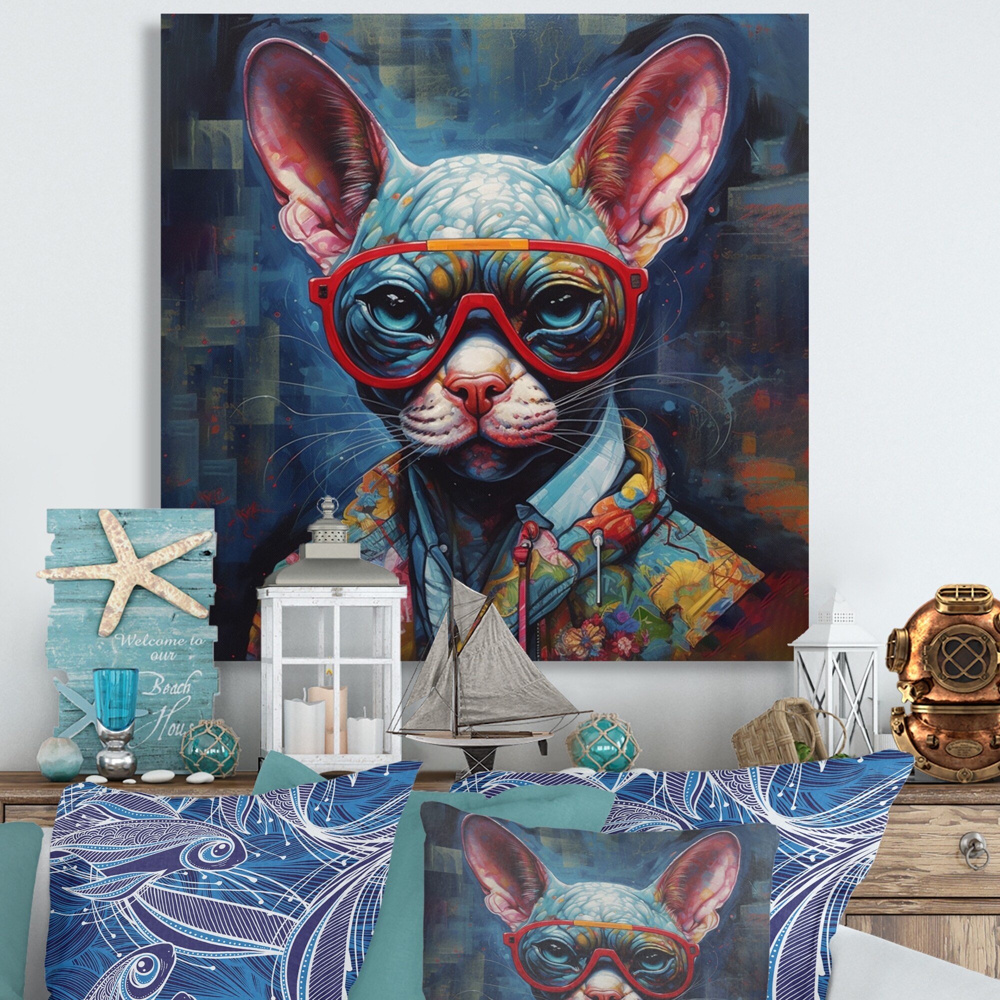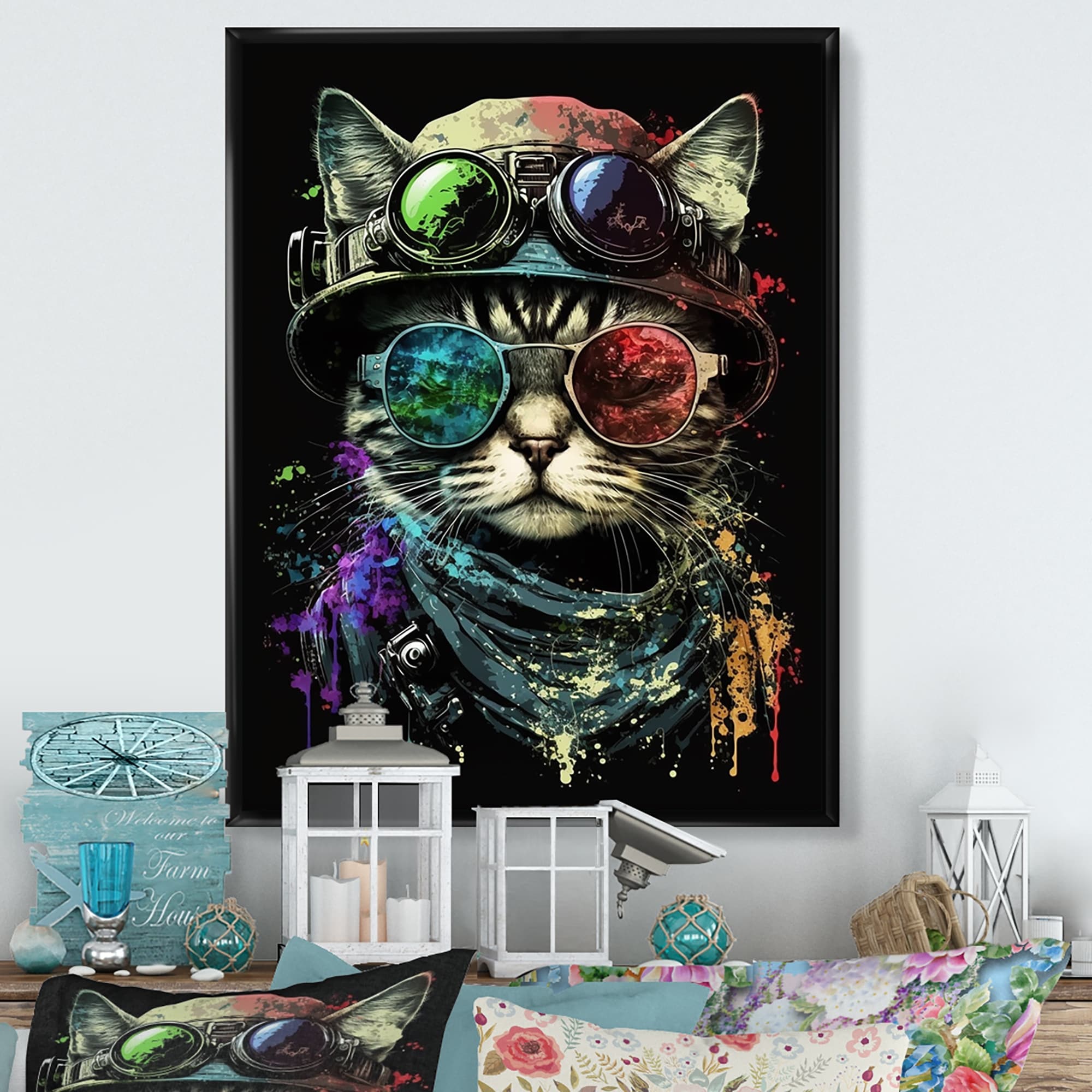 Designart "Bohemian Cat With Sunglasses III" Animals Cat Framed Canvas Wall Art Print