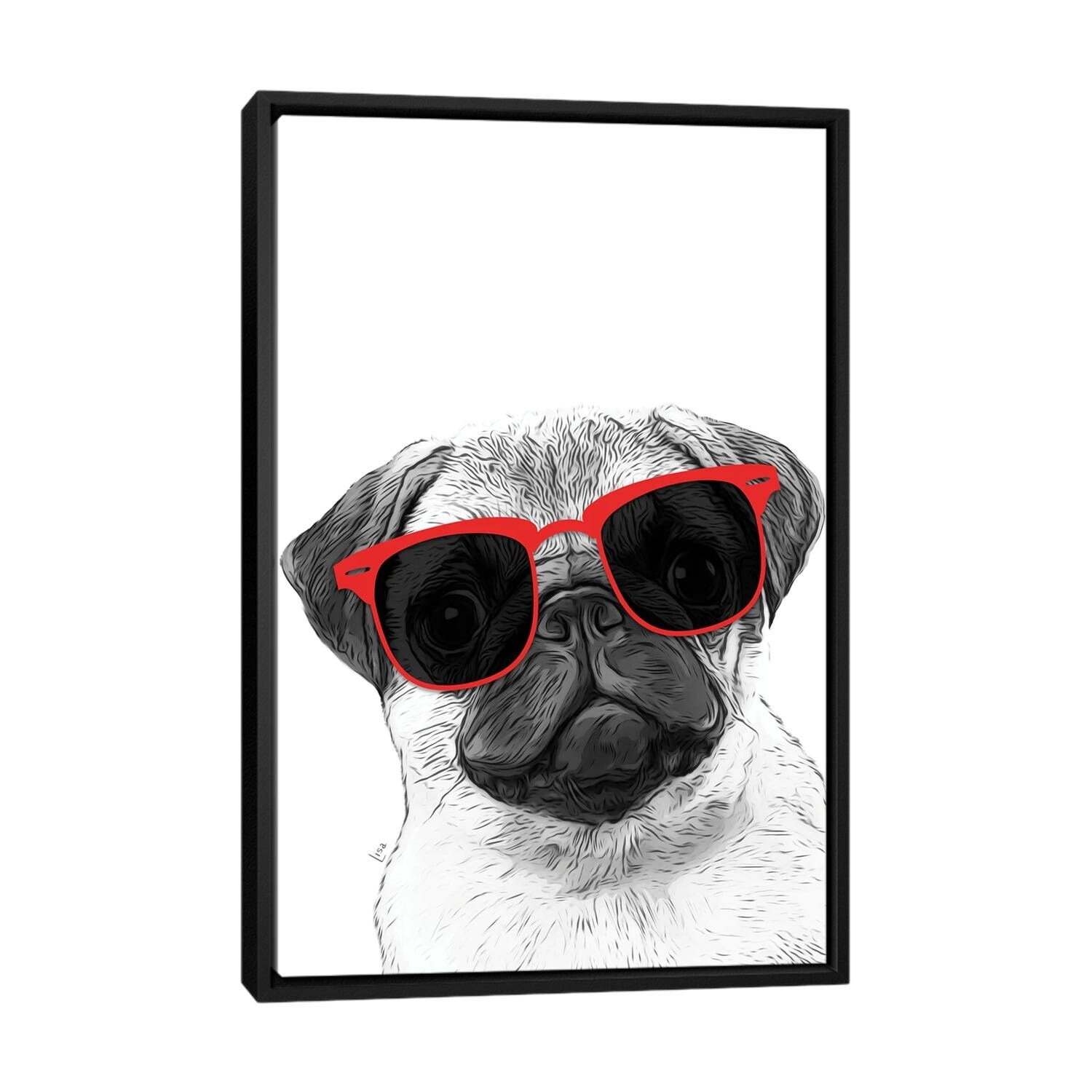 iCanvas "Pug With Red Sunglasses" by Printable Lisa's Pets Framed