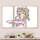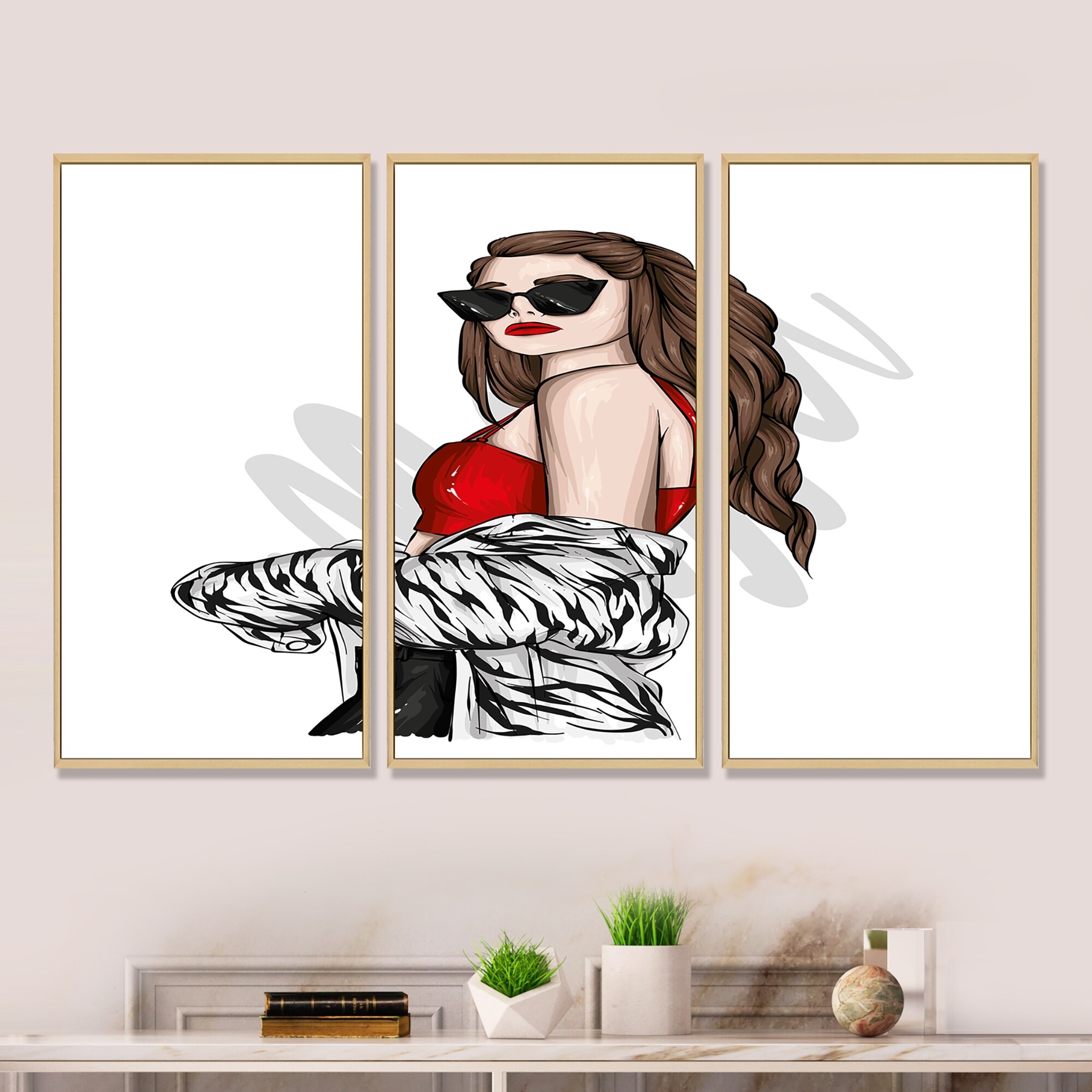 Designart "Young Stylish Woman With Sunglasses IV" Modern Framed Wall Decor Set of 3 - 4 Colors of Frames