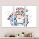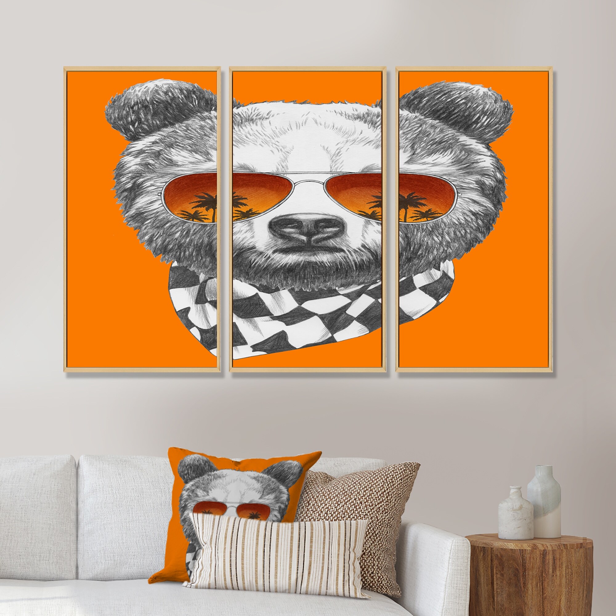 Designart "Funny Bear with Sunglasses" Animal Framed Canvas Wall Art Set of 3 - 4 Colors of Frames
