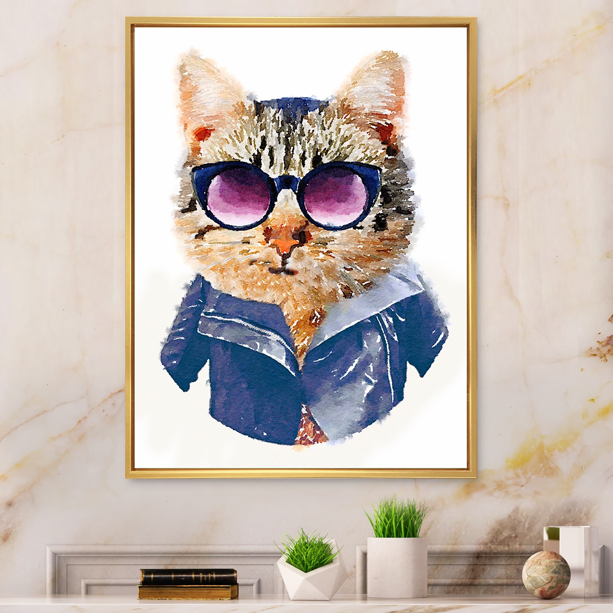 Designart "Cartoon Stylish Cat With Sunglasses" Children's Art Framed Canvas artwork