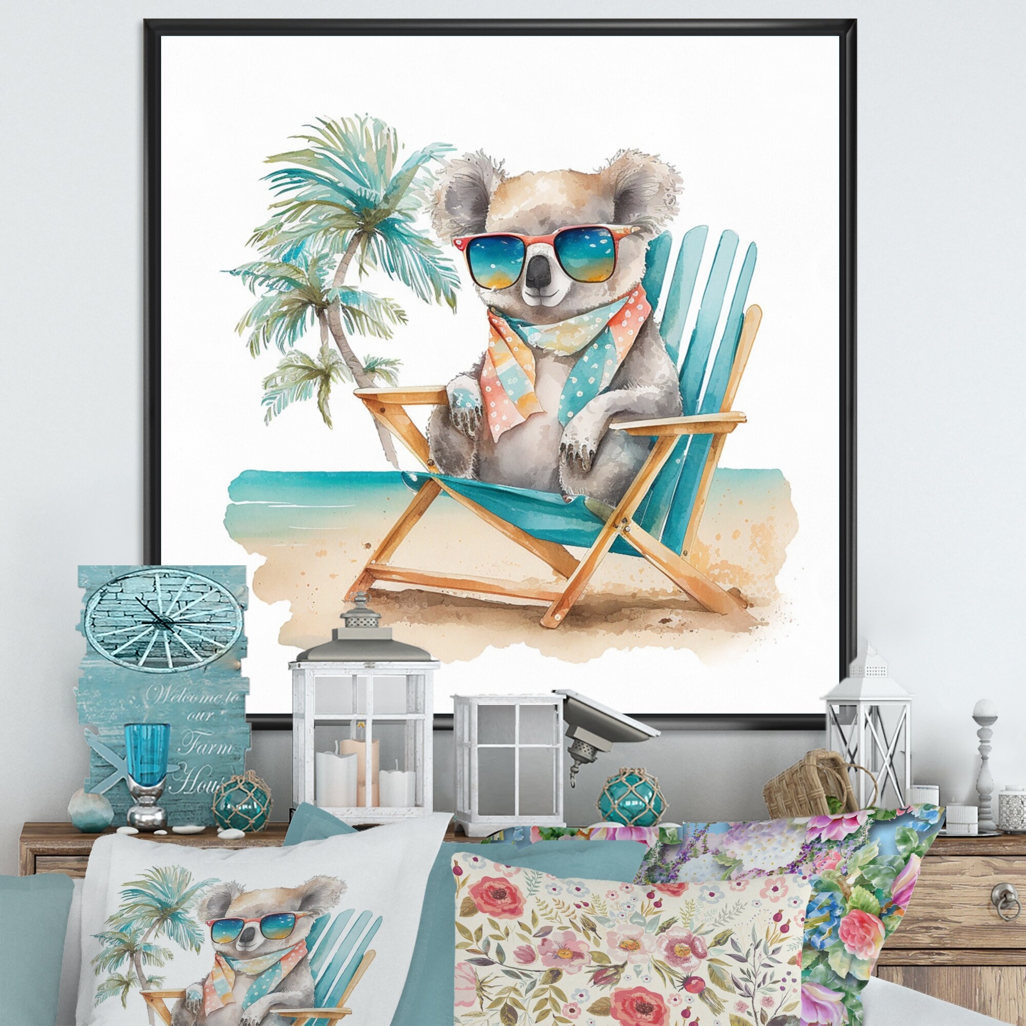 Designart "Koala With Sunglasses on the Beach" Animals Framed Canvas Art Print