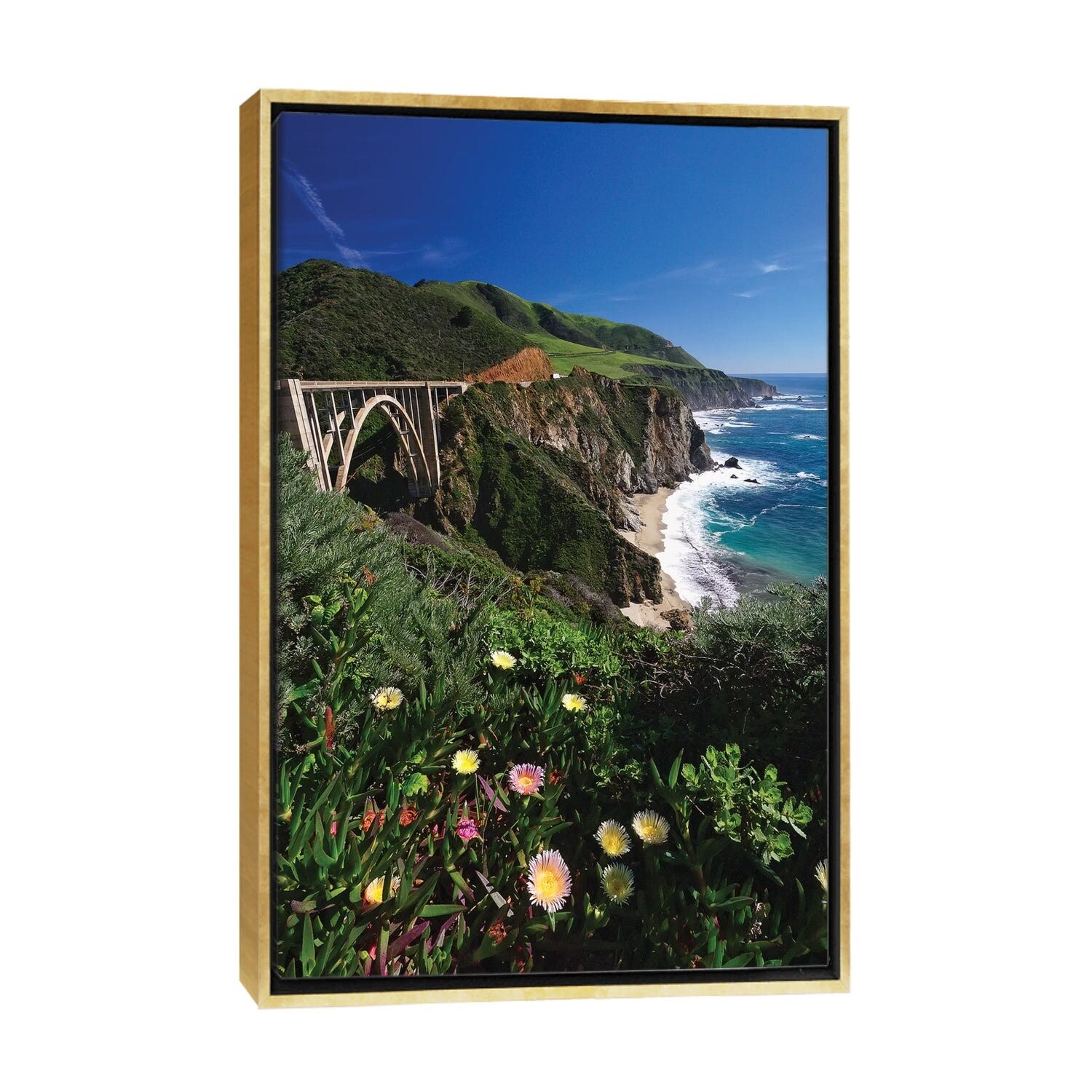 iCanvas "Wildflower Bloom at the Bixby Bridge, Big Sur Coast, California" by George Oze Framed
