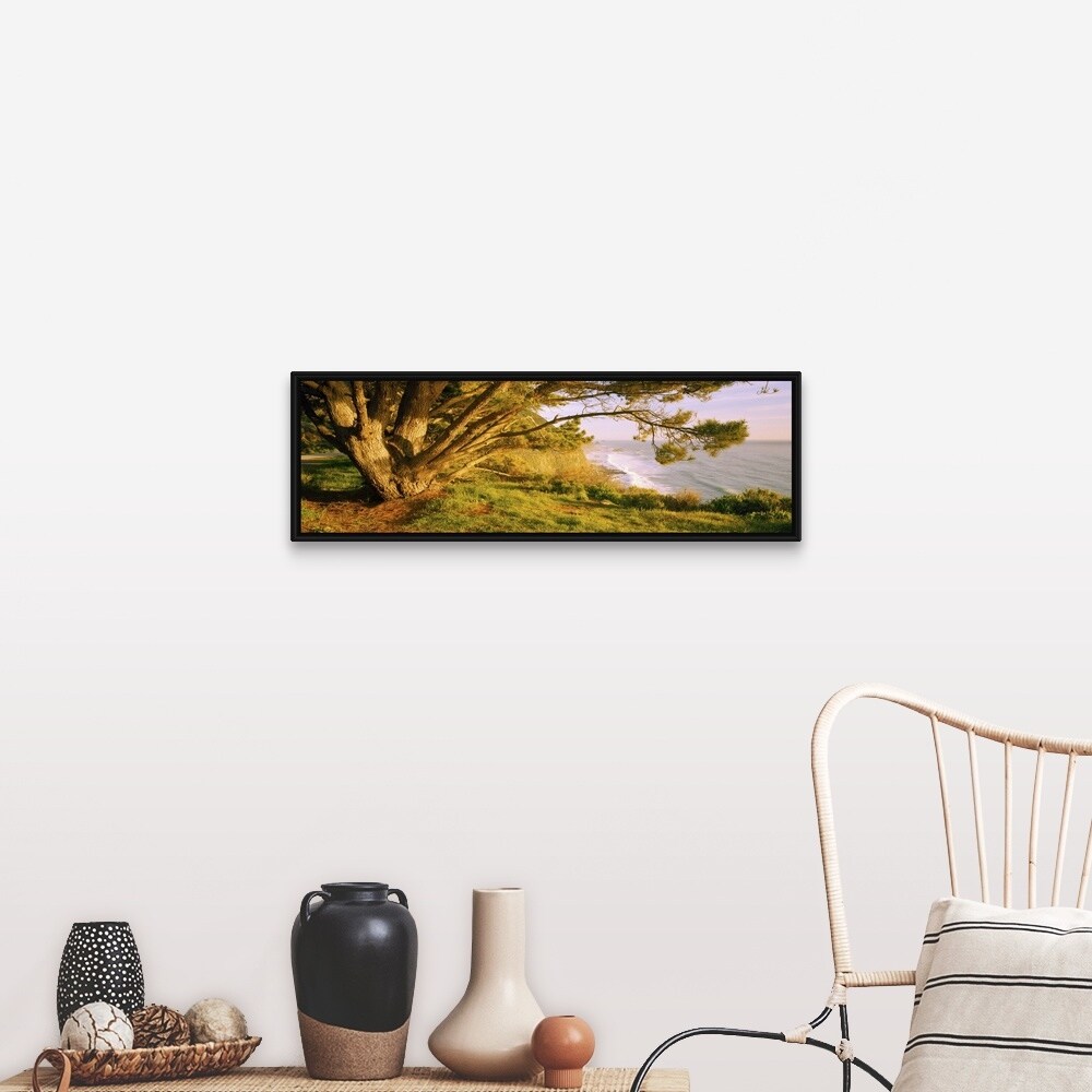 "Tree on the coast, Big Sur, California" Black Float Frame Canvas Art