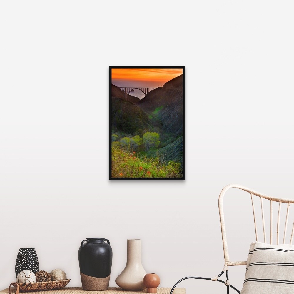 iCanvas "Wildflower Bloom at the Bixby Bridge, Big Sur Coast, California" by George Oze Framed Canvas Print