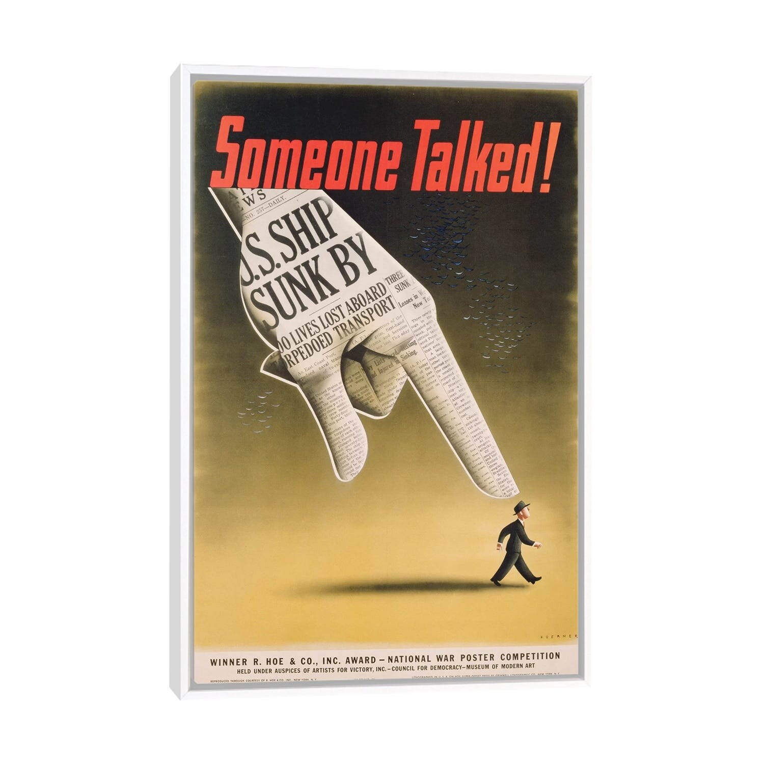 iCanvas "Someone Talked U.S. Ship Sunk By.., American poster " by American School Framed Canvas Print