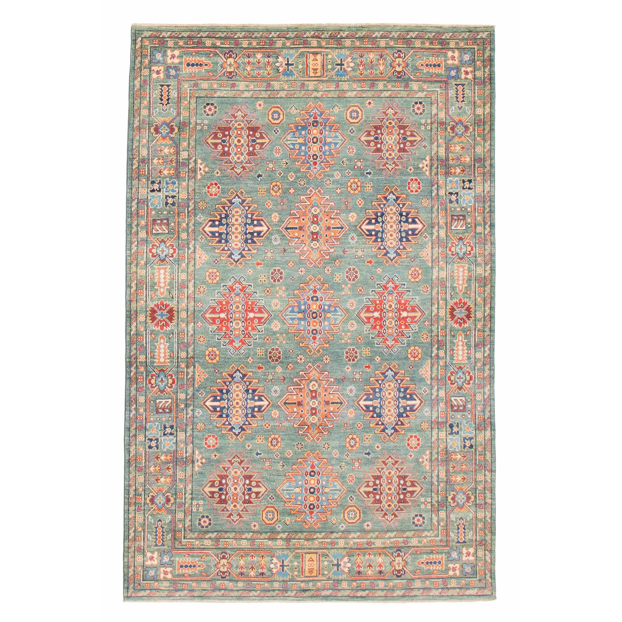 ECARPETGALLERY Hand-knotted Ghazni Teal Wool Rug - 6'0 x 9'1