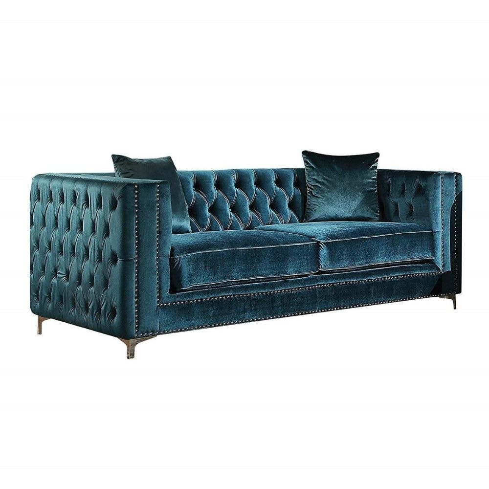 Velvet Loveseat with 2 Pillows in Dark Teal