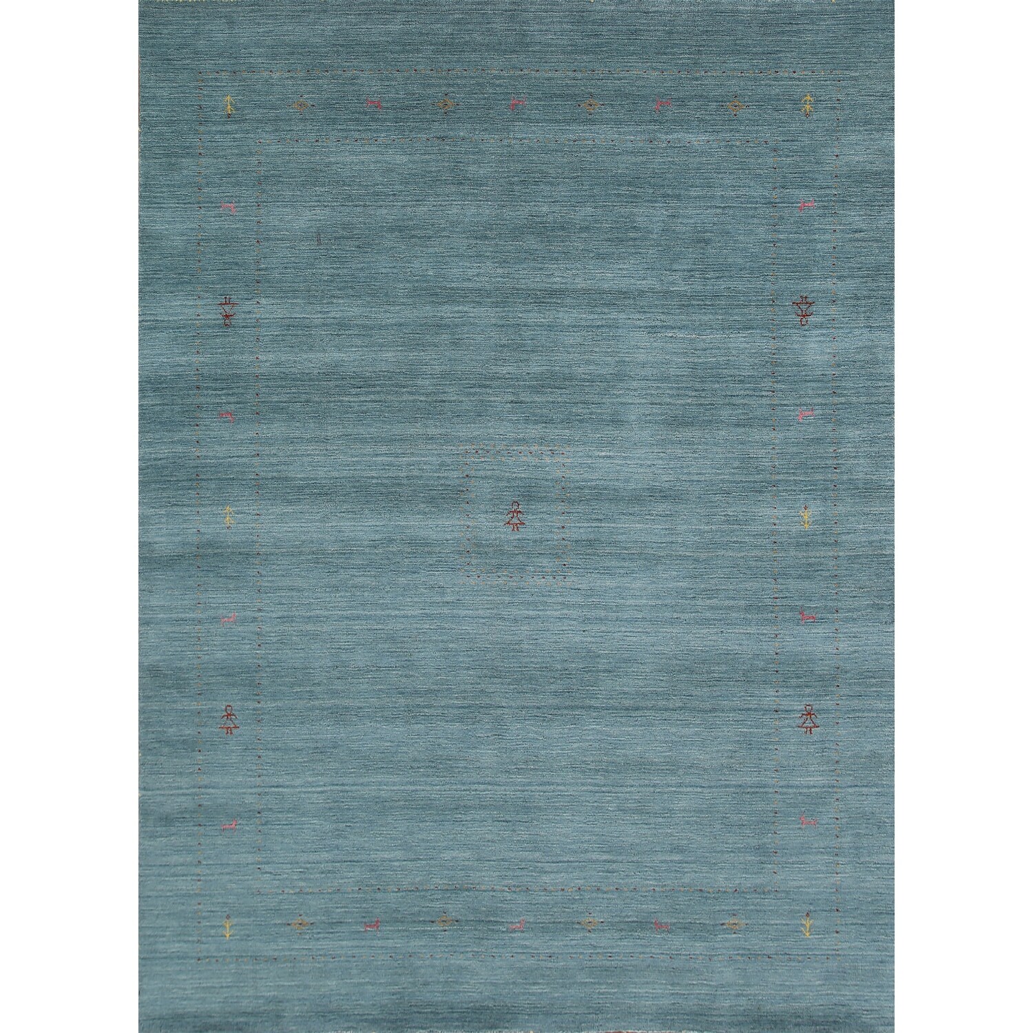 Teal Blue Gabbeh Oriental Area Rug Hand-Knotted Wool Carpet - 8'3"x 9'10"