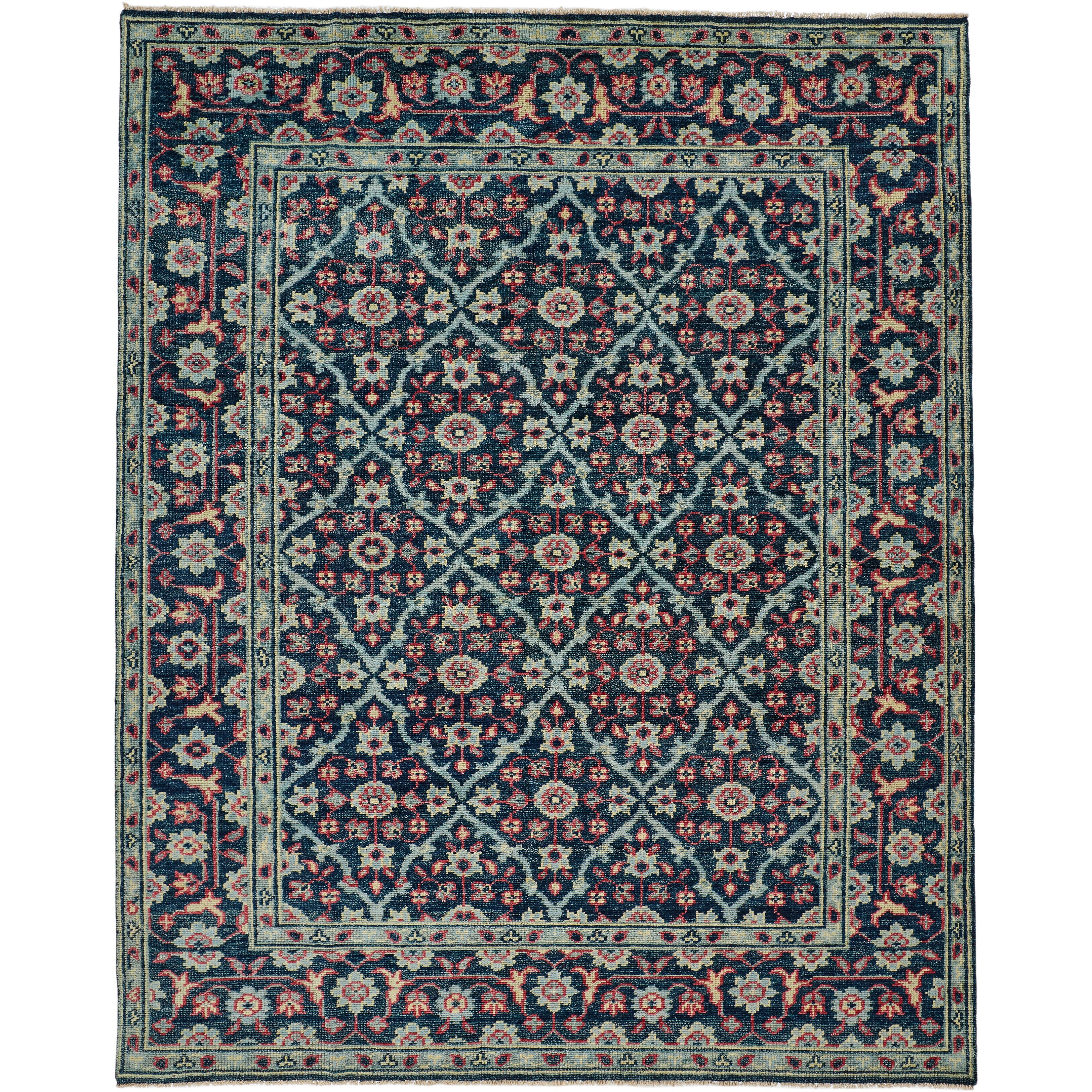 Bashyr Nordic Hand Knot Wool Rug, Deep Teal/Red, Area Rug