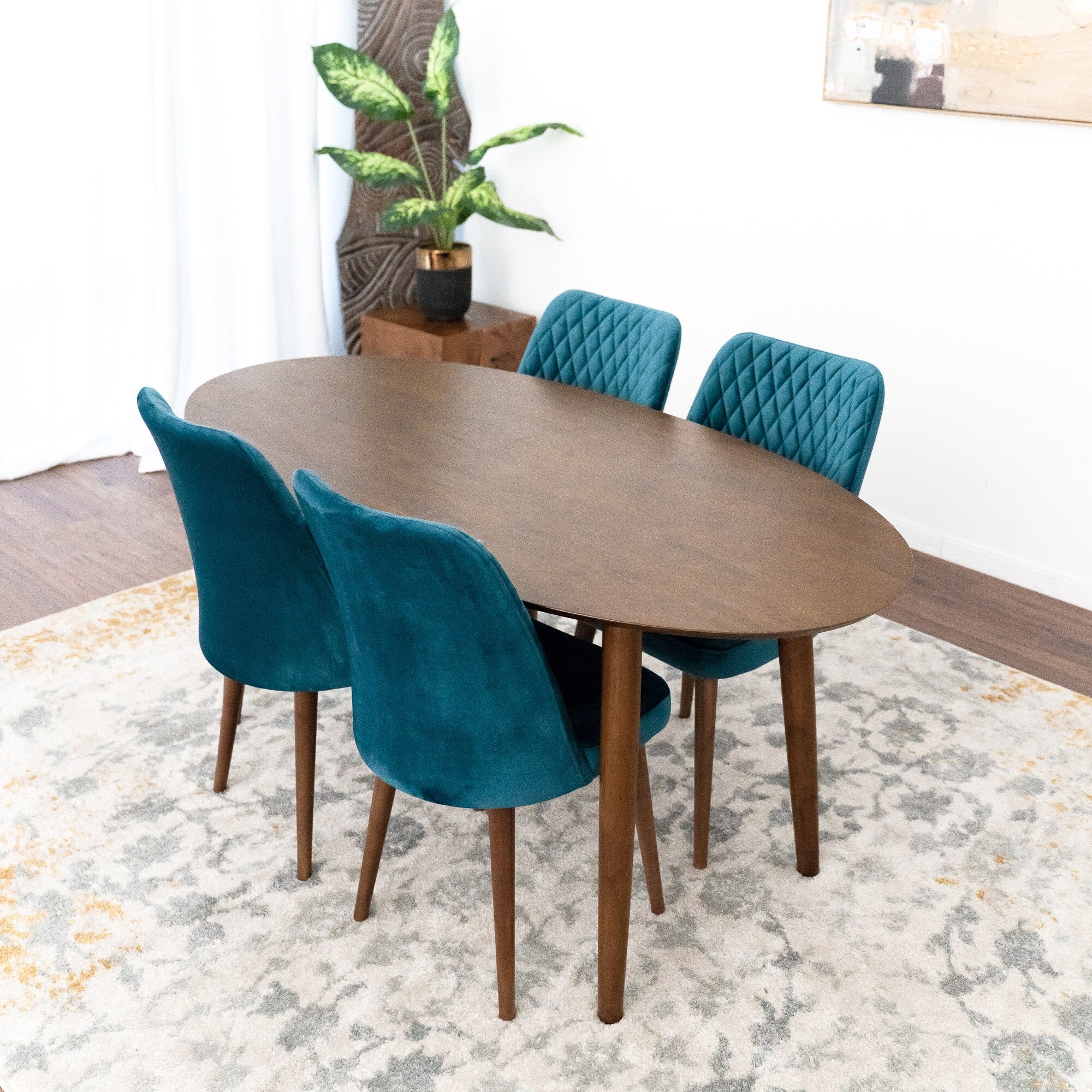 Kadenza 5-Piece Oval Dining Set w/ 4 Velvet Dining Chairs in Teal