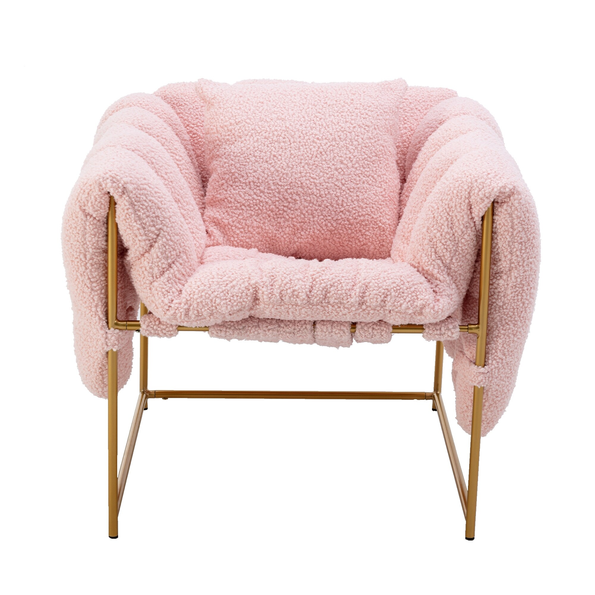 Livingroom Accent Chair, Leisure Single Arm Sofa with Teddy Pillow Top and Open Golden Iron Frame Armchairs for Bedroom