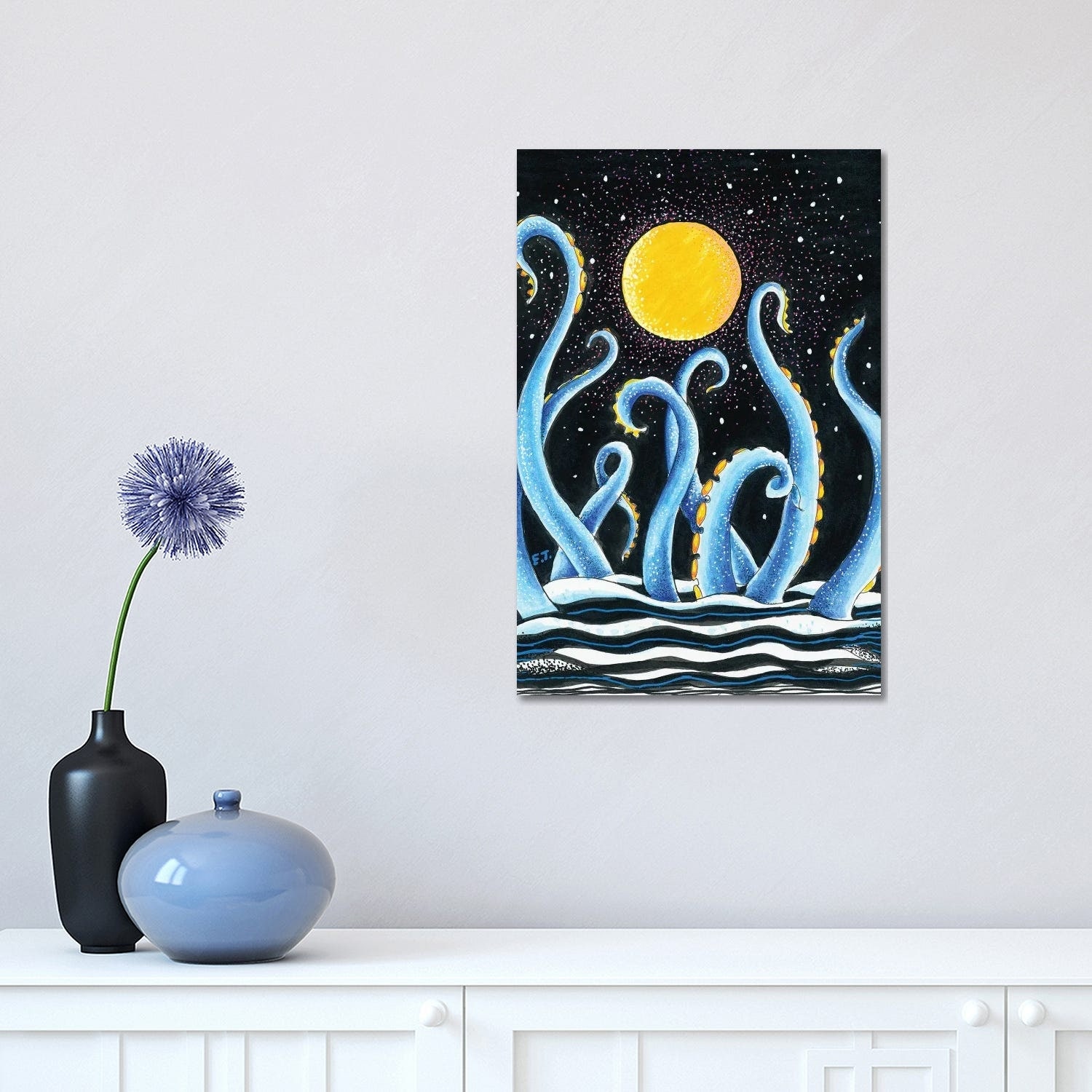 iCanvas "Blue Tentacles Moon And Stars Ink" by Seven Sirens Studios Canvas Print