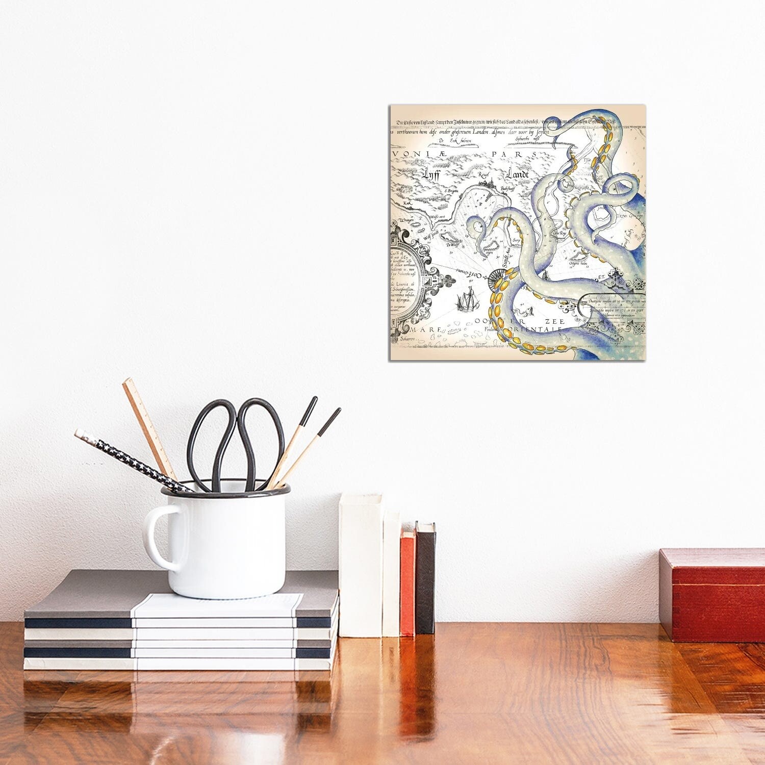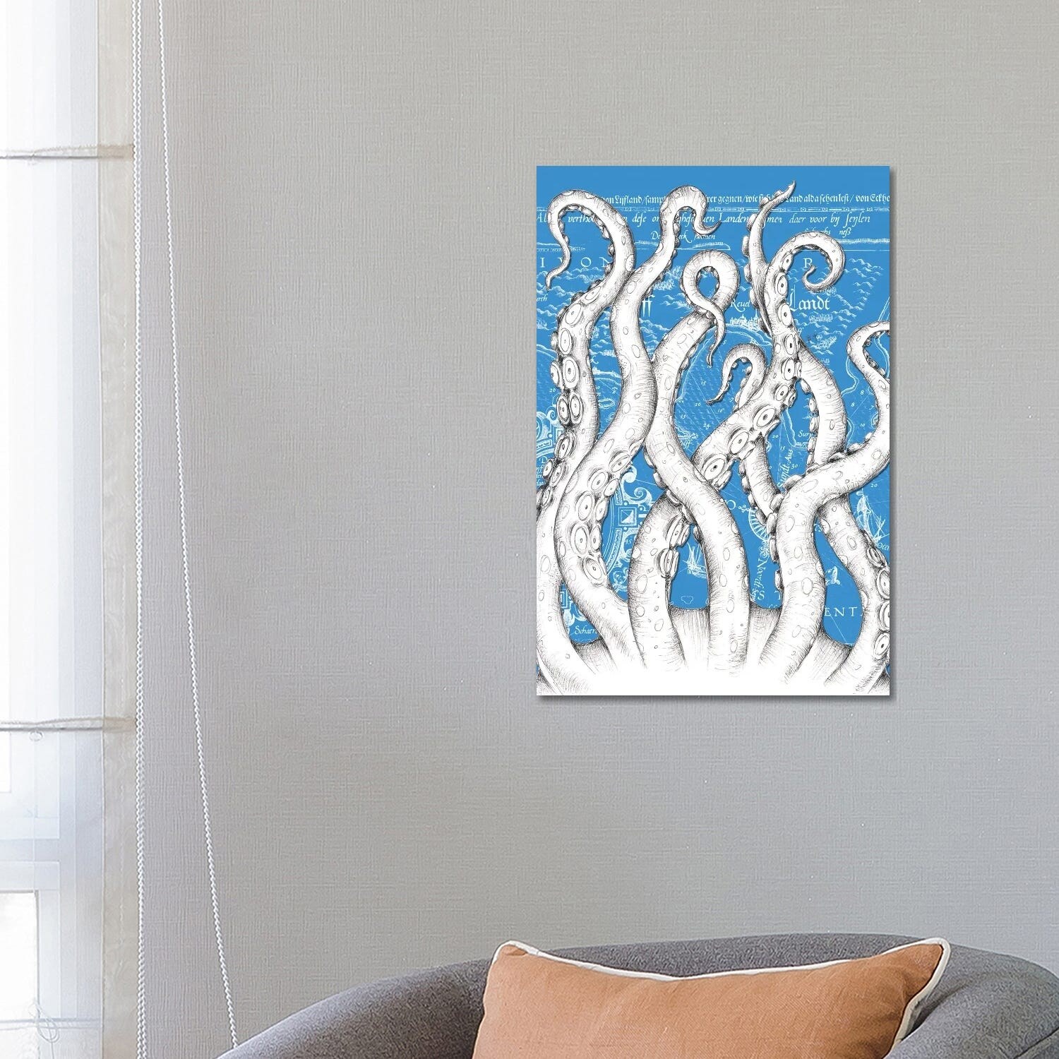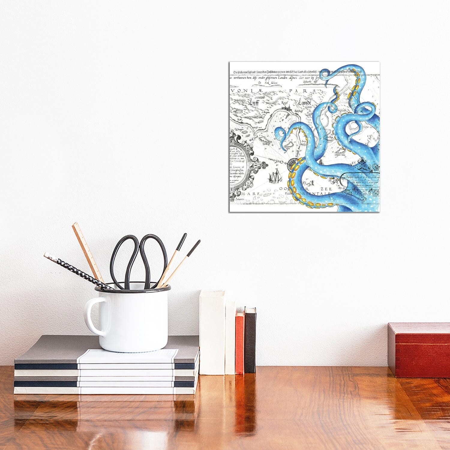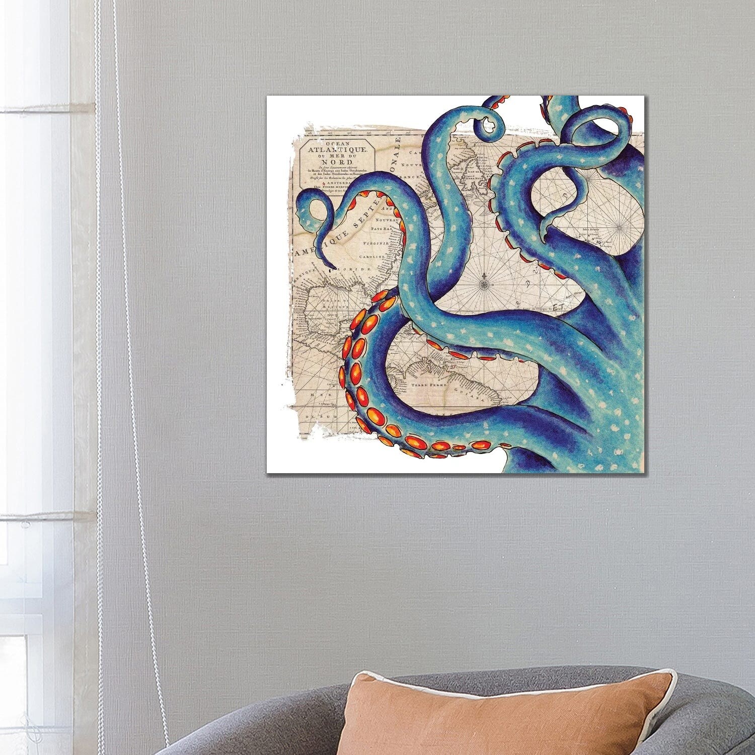 iCanvas "Tentacles Octopus Blue Watercolor Nautical Map" by Seven Sirens Studios Canvas Print