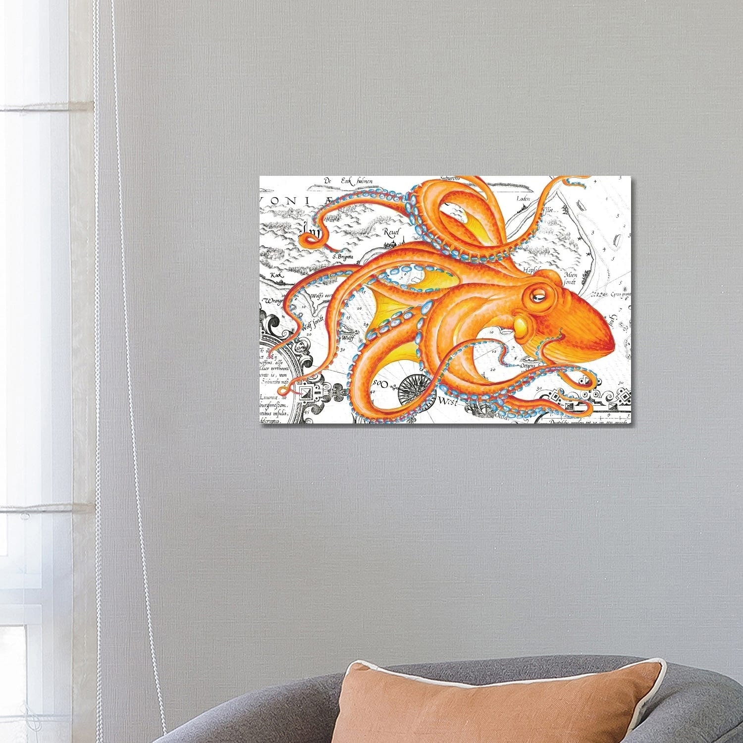 iCanvas "Orange Octopus Tentacles Vintage Map Nautical" by Seven Sirens Studios Canvas Print