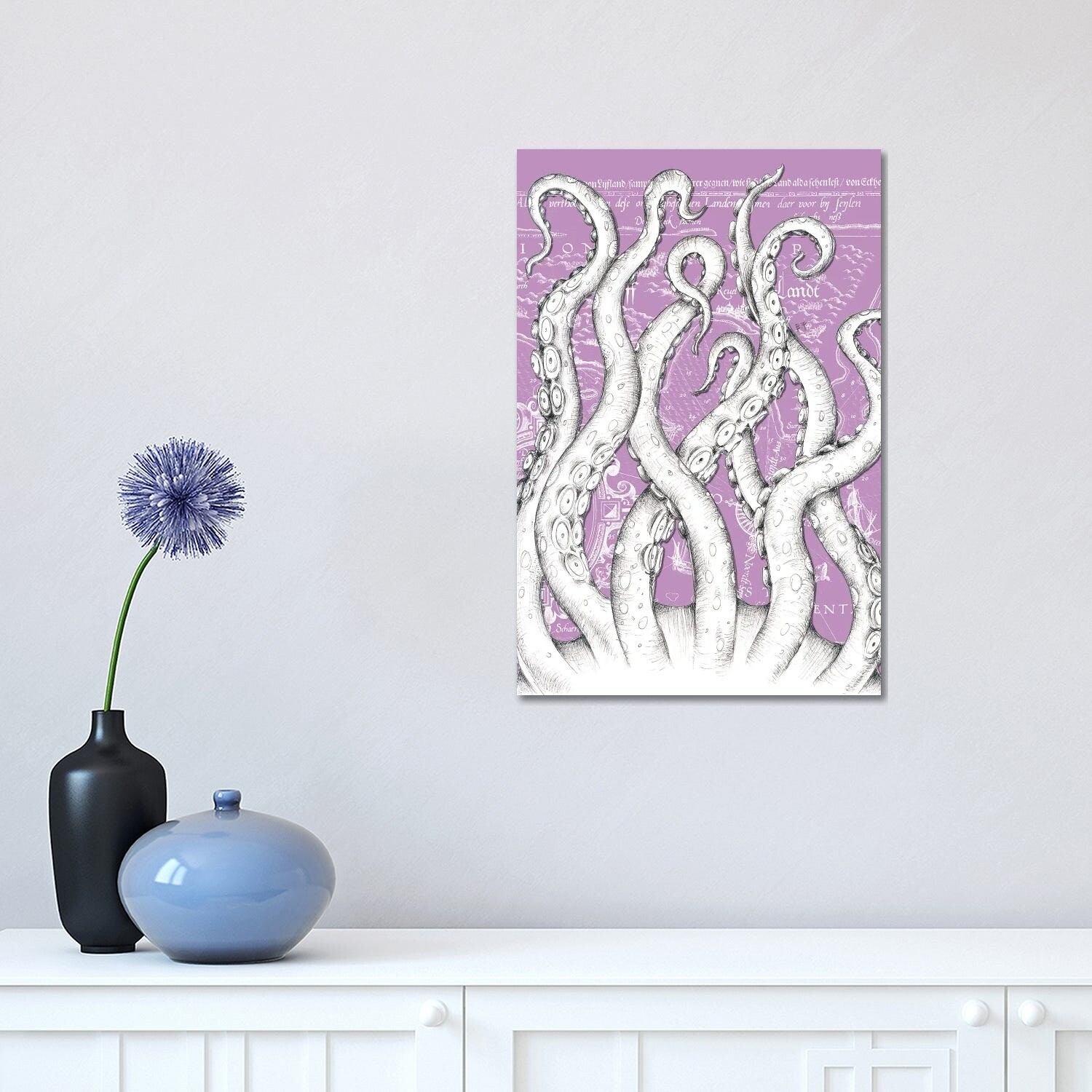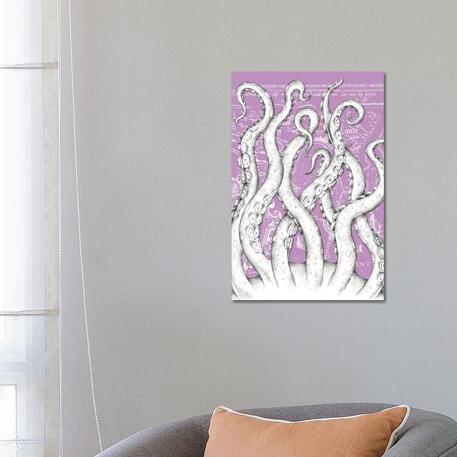 iCanvas "White Tentacles Octopus Purple Vintage Map" by Seven Sirens Studios Canvas Print