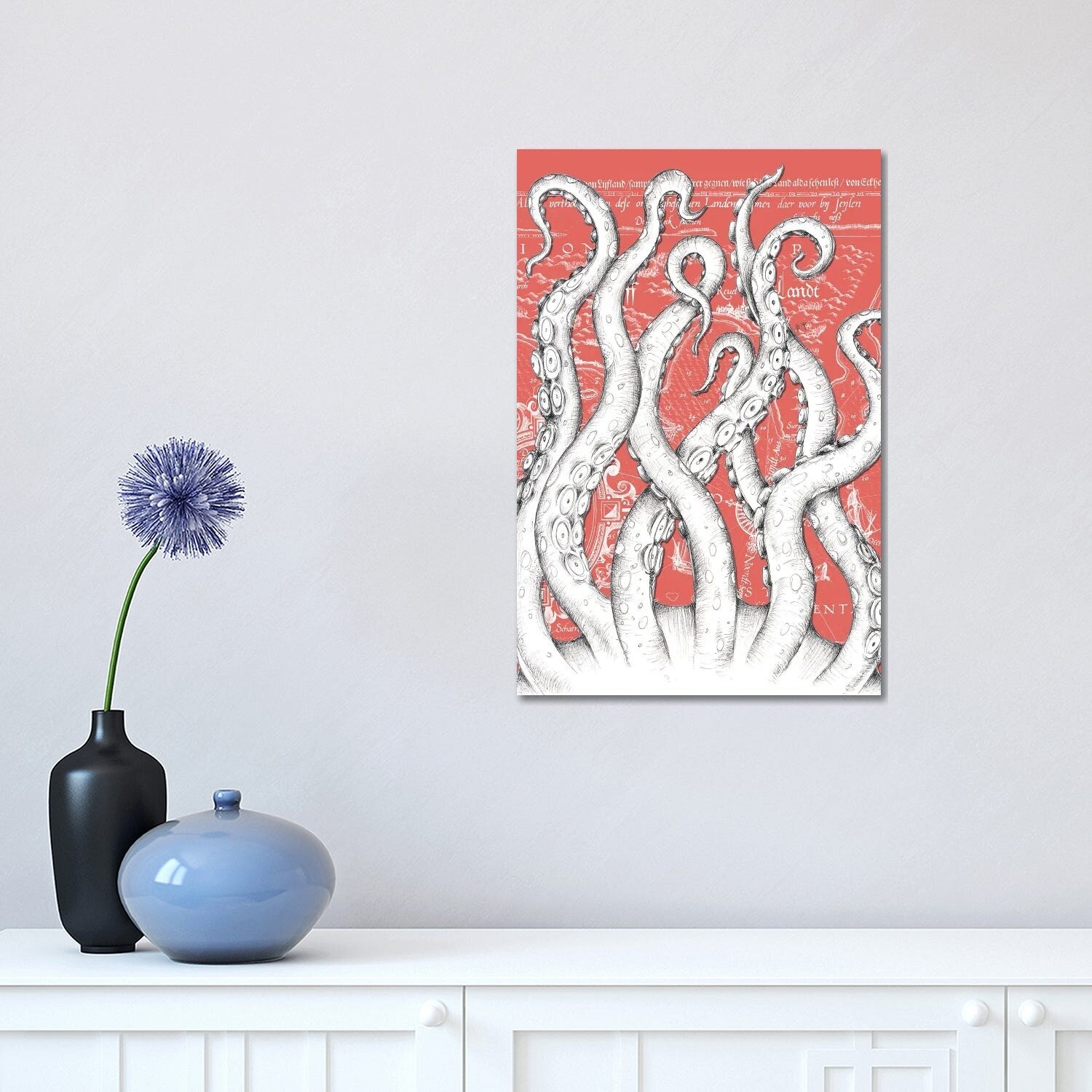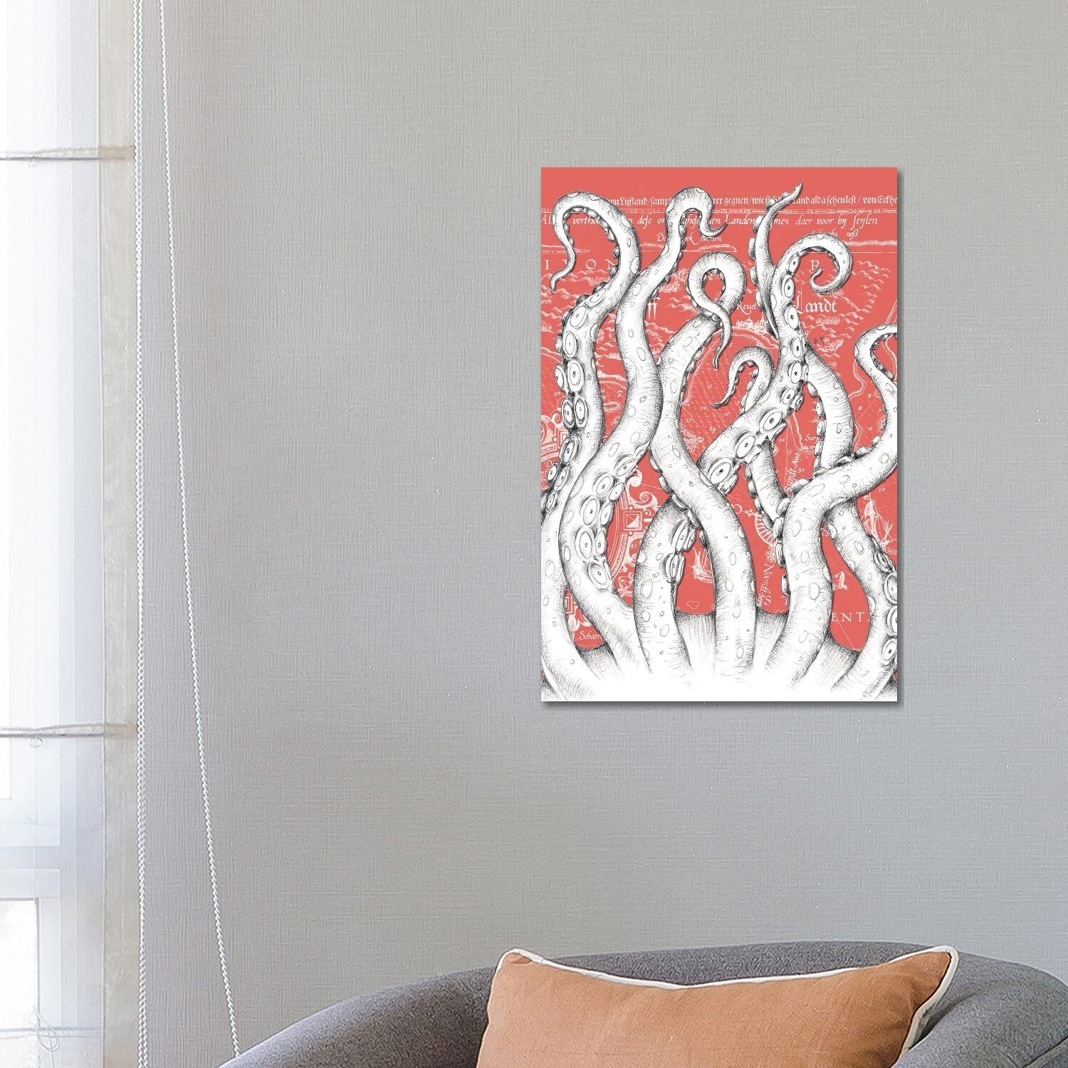iCanvas "White Tentacles Octopus Red Vintage Map" by Seven Sirens Studios Canvas Print