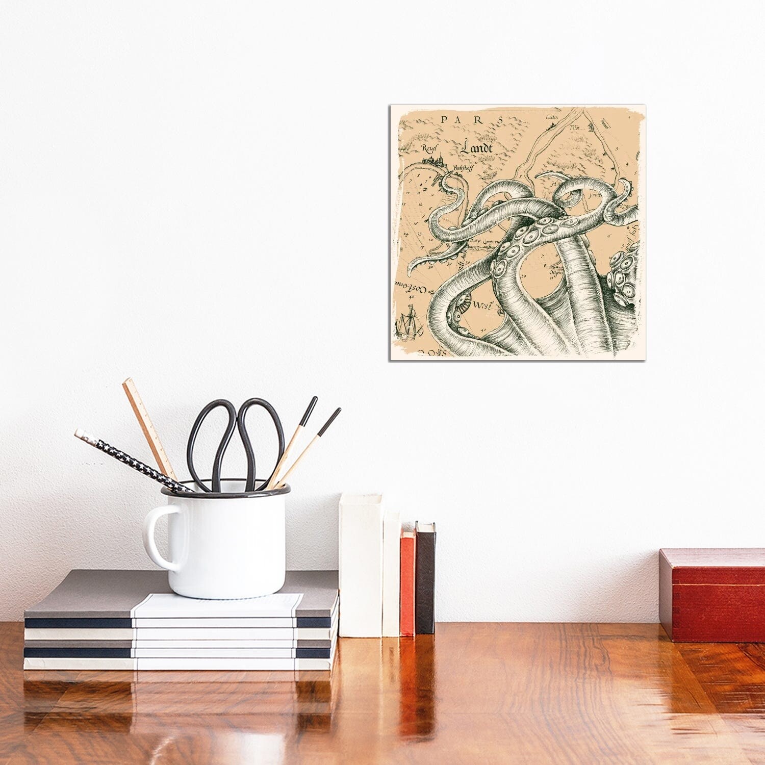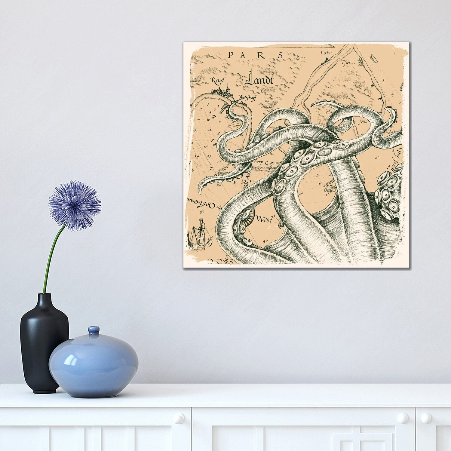 iCanvas "Octopus Tentacles Vintage Map Brushed Beige" by Seven Sirens Studios Canvas Print