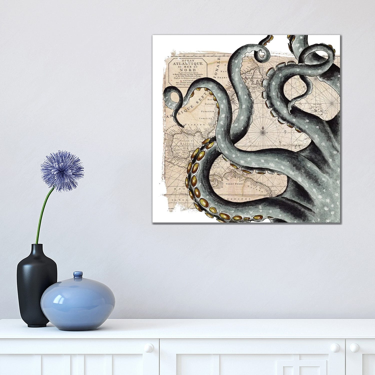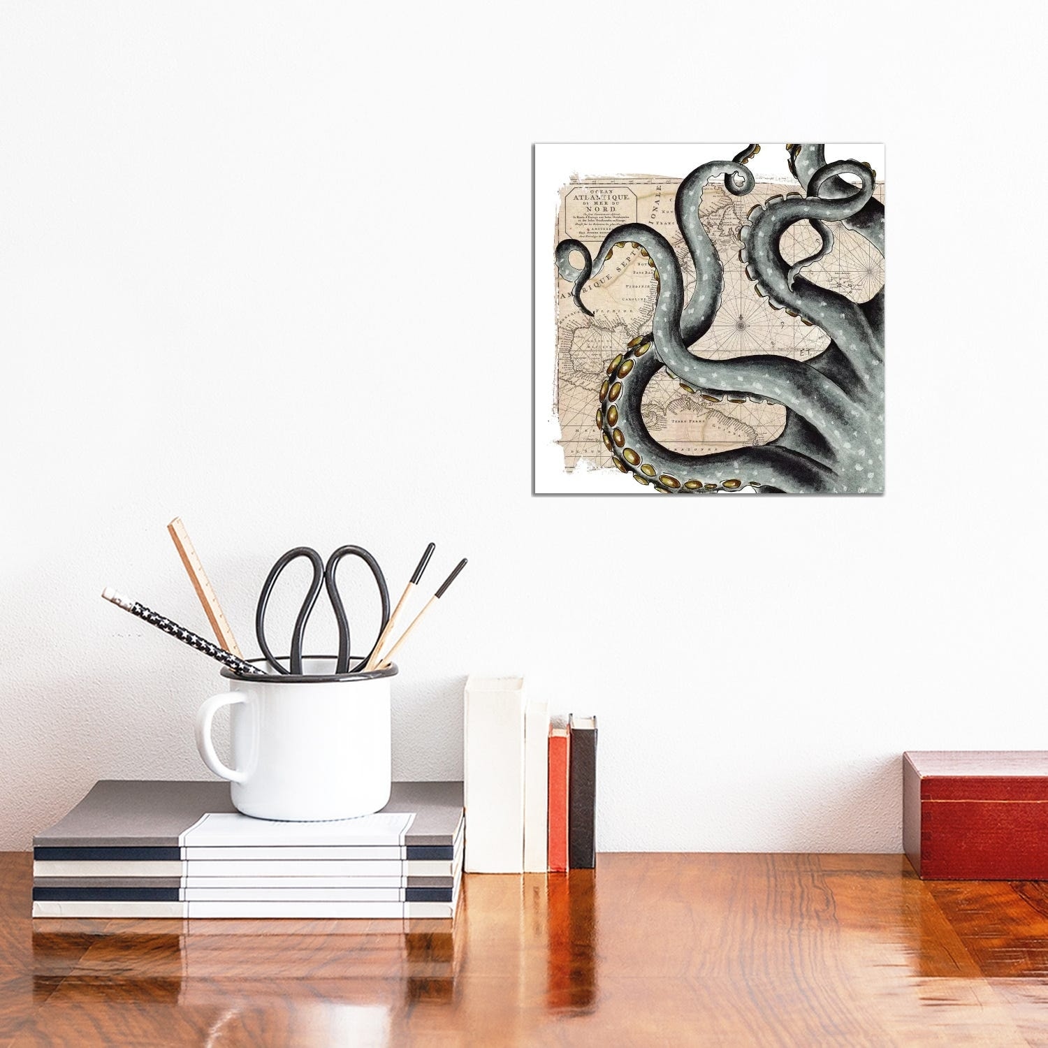 iCanvas "Tentacles Octopus Grunge Watercolor Nautical Map" by Seven Sirens Studios Canvas Print