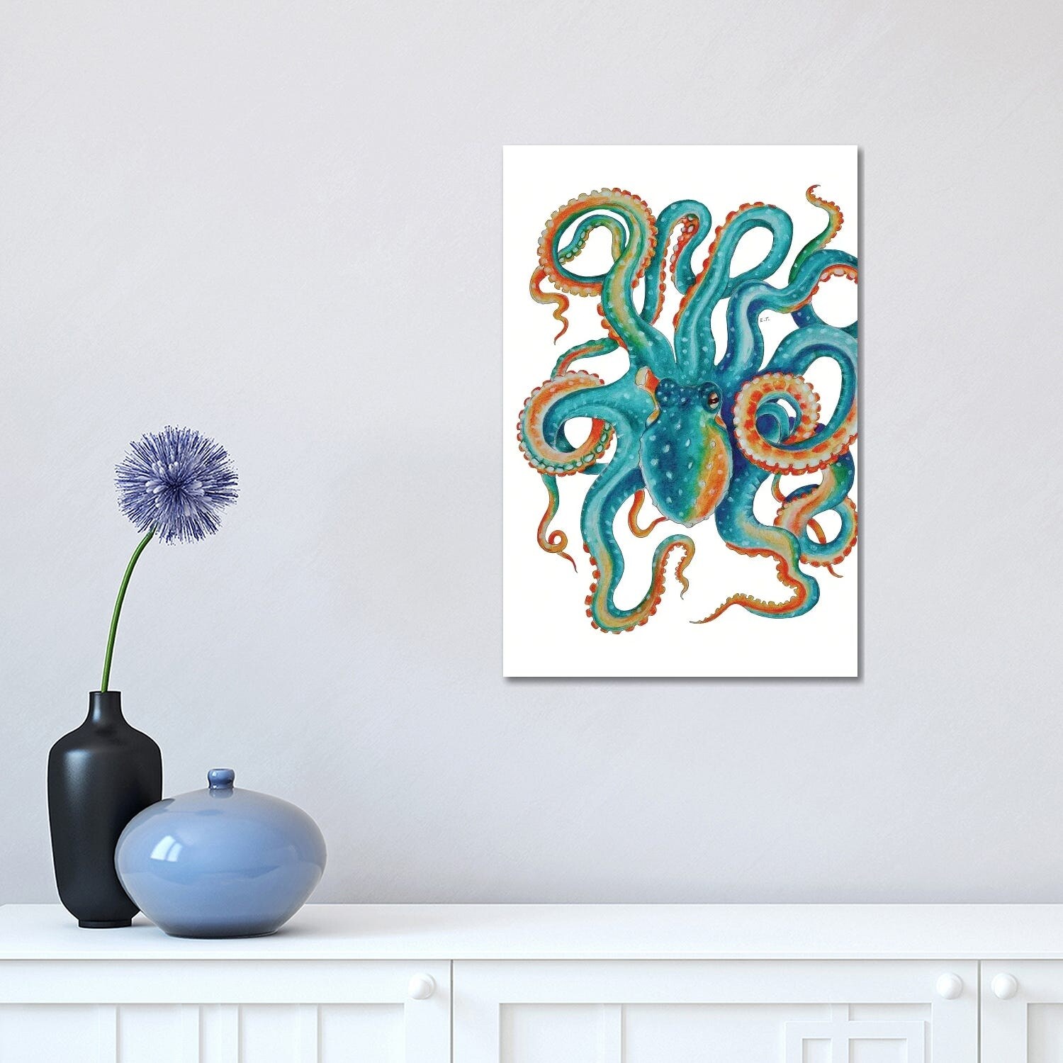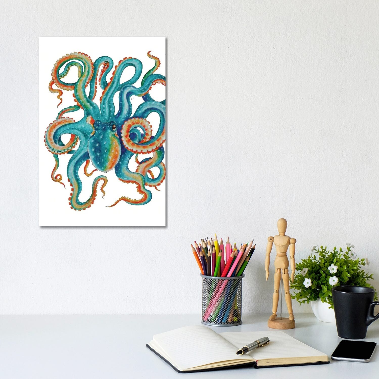 iCanvas "Octopus Teal Tentacles Watercolor Art" by Seven Sirens Studios Canvas Print