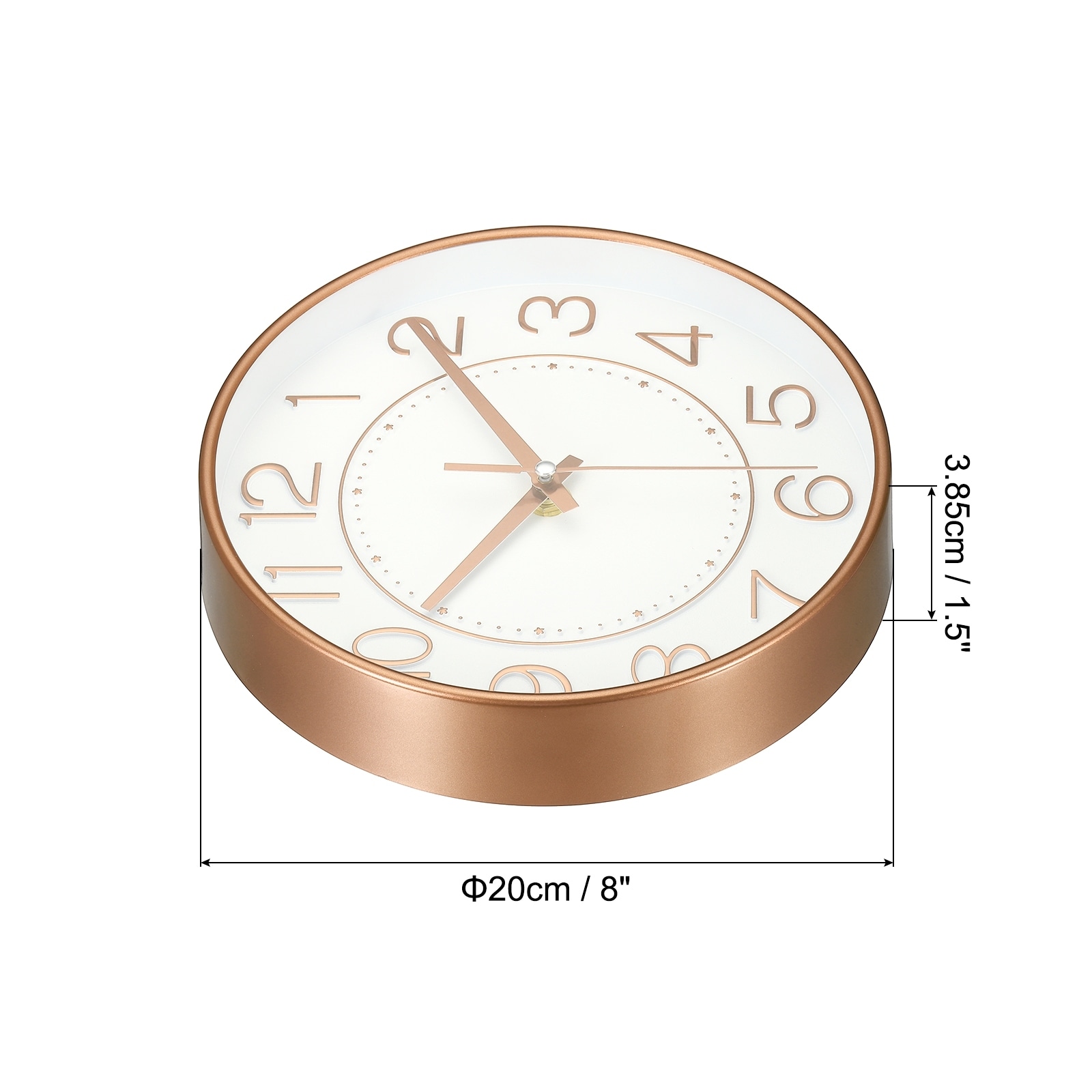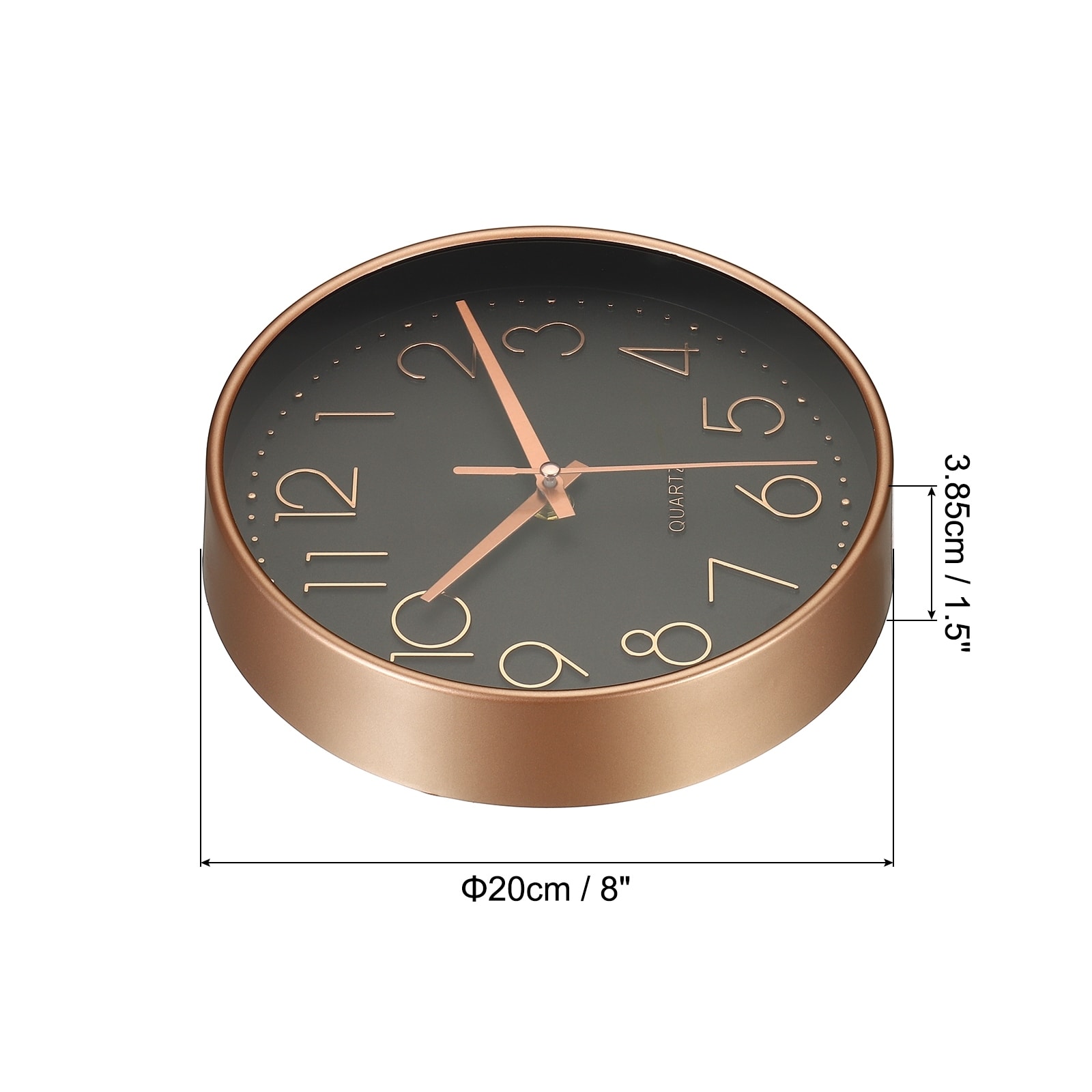 8" Wall Clock Battery Operated Silent Non-Ticking Round Modern Clock Gold