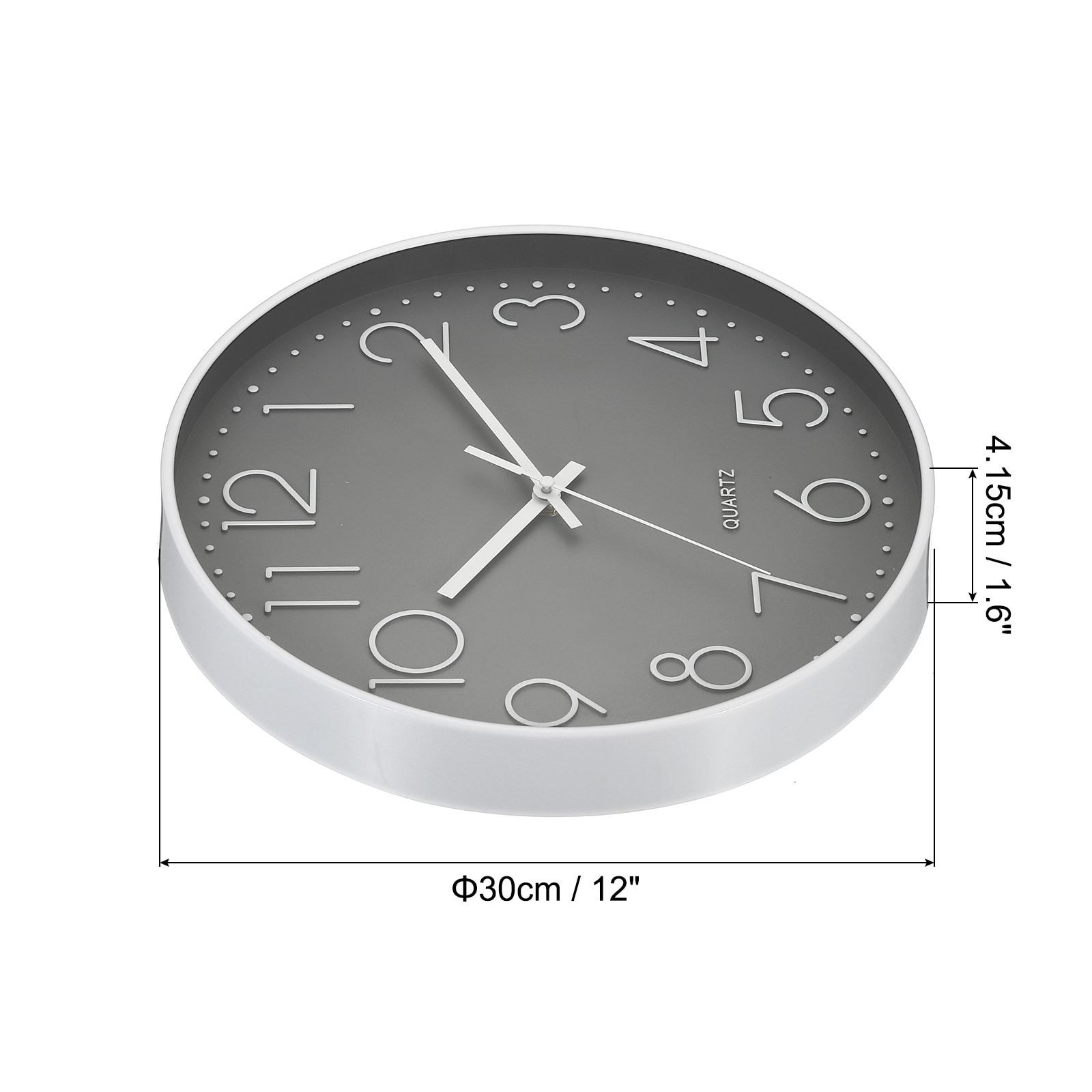 12" Wall Clock Battery Operated Silent Non-Ticking Round Clock Gray White - Gray White