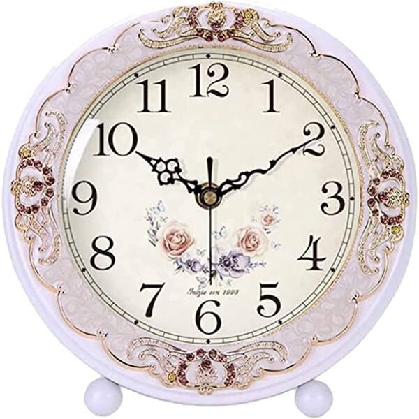 Vintage Table Clock, Retro Non-Ticking European Style Beside Desk Clock Battery Operated Silent Quartz Movement Rose
