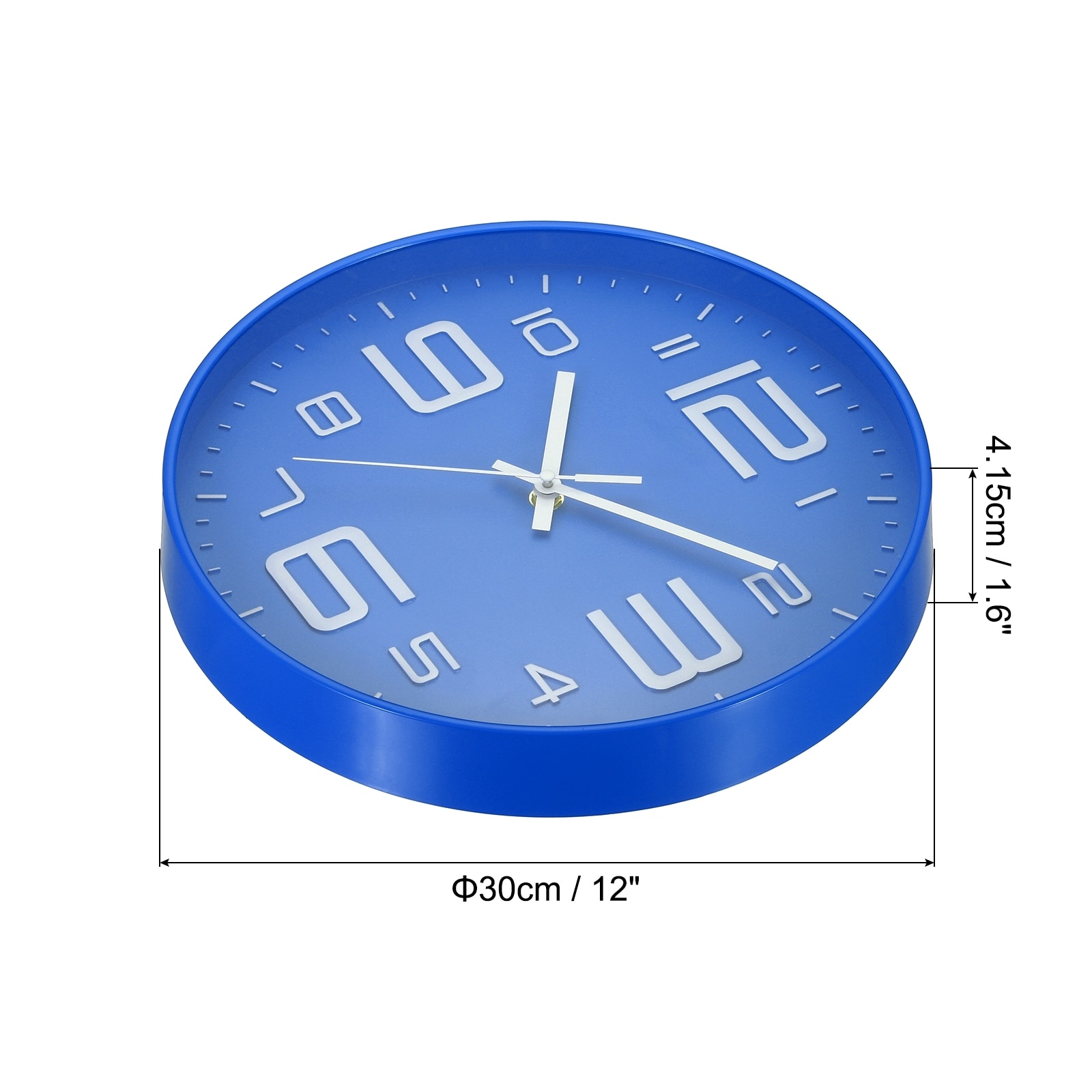 2Pcs 12" Wall Clock Battery Operated Silent Non-Ticking 3D Numbers Blue