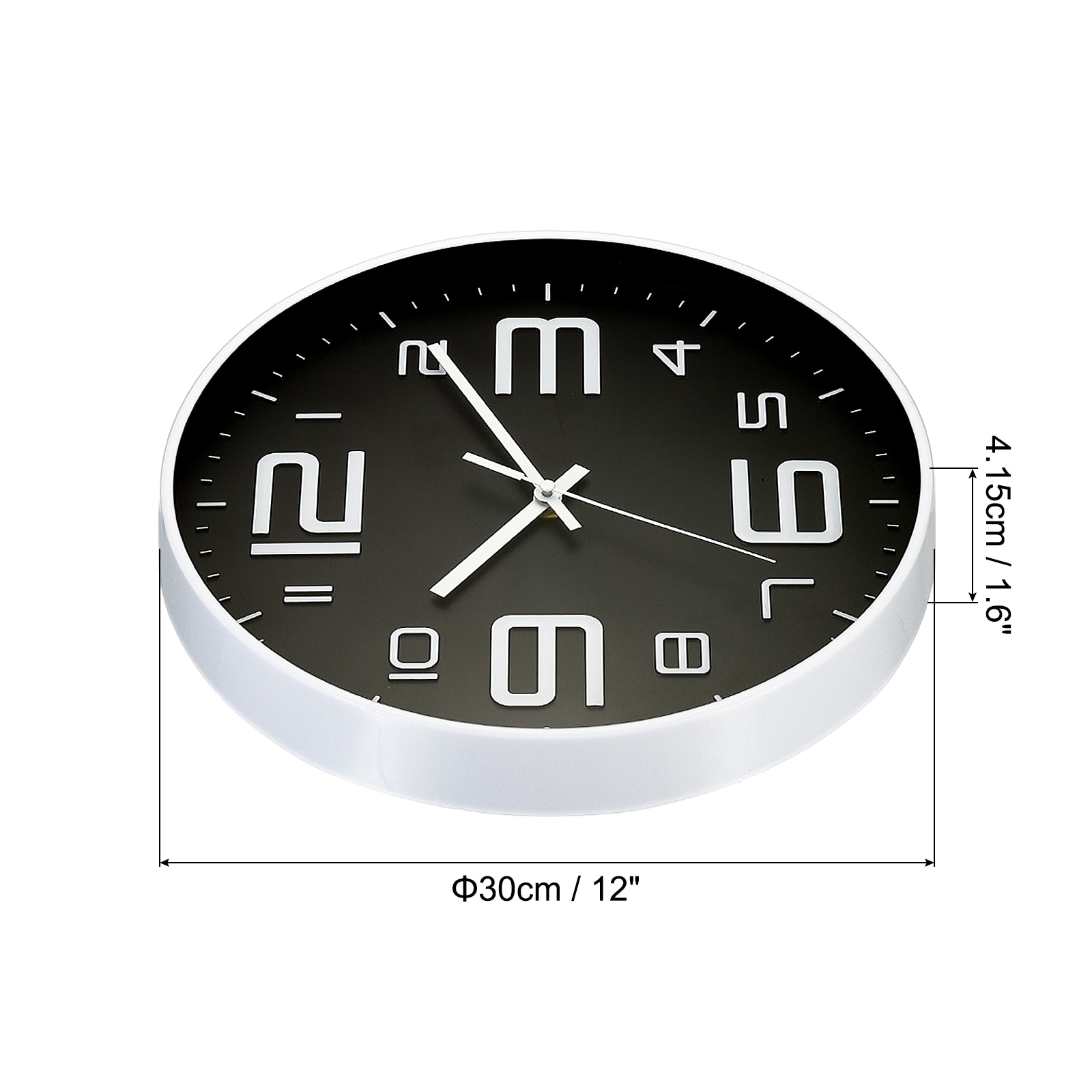 2Pcs 12" Wall Clock Battery Operated Silent Non-Ticking 3D Numbers Black White