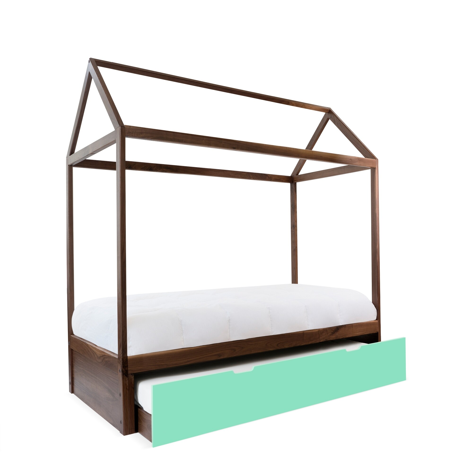 Cubo Zen Bed with Trundle Full, Made of Solid Walnut,