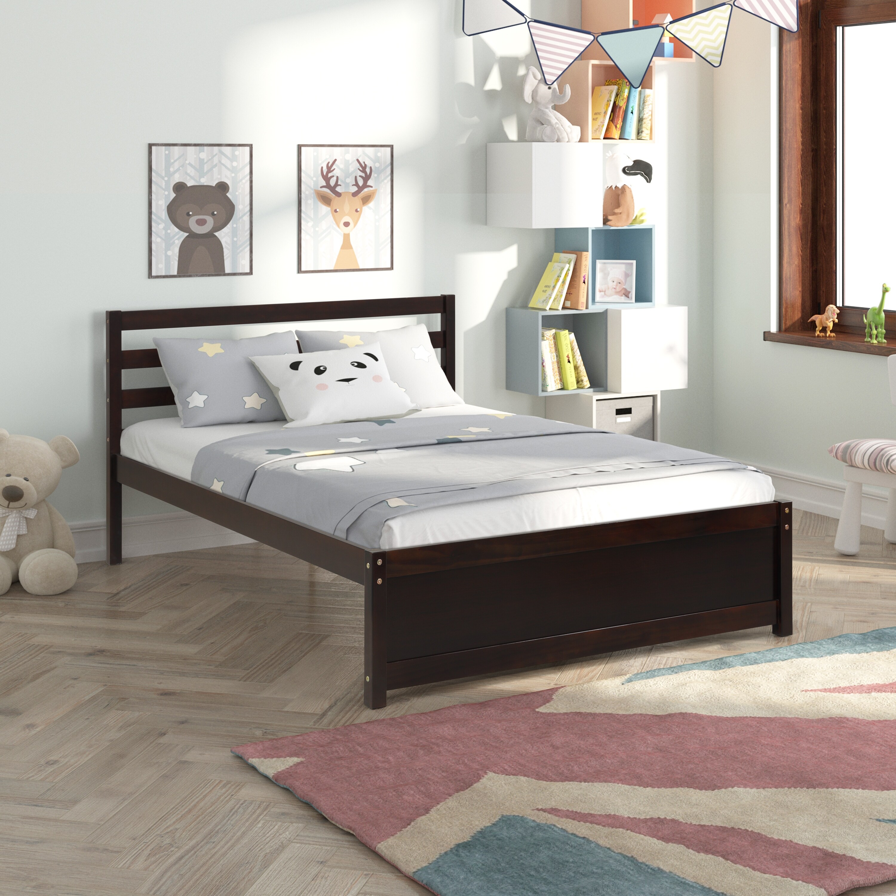 Full Size Wooden Frame Platform Bed with Headboard & Footboard