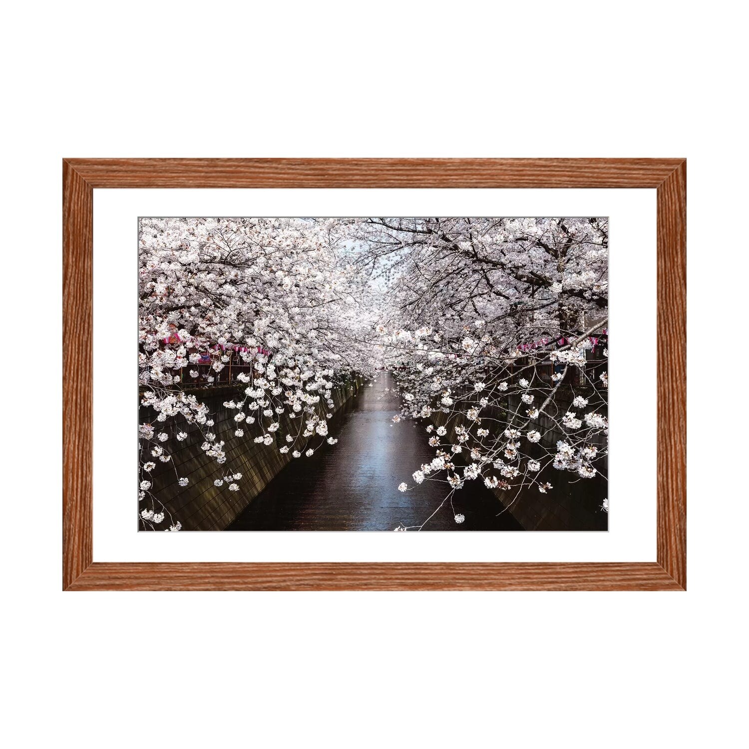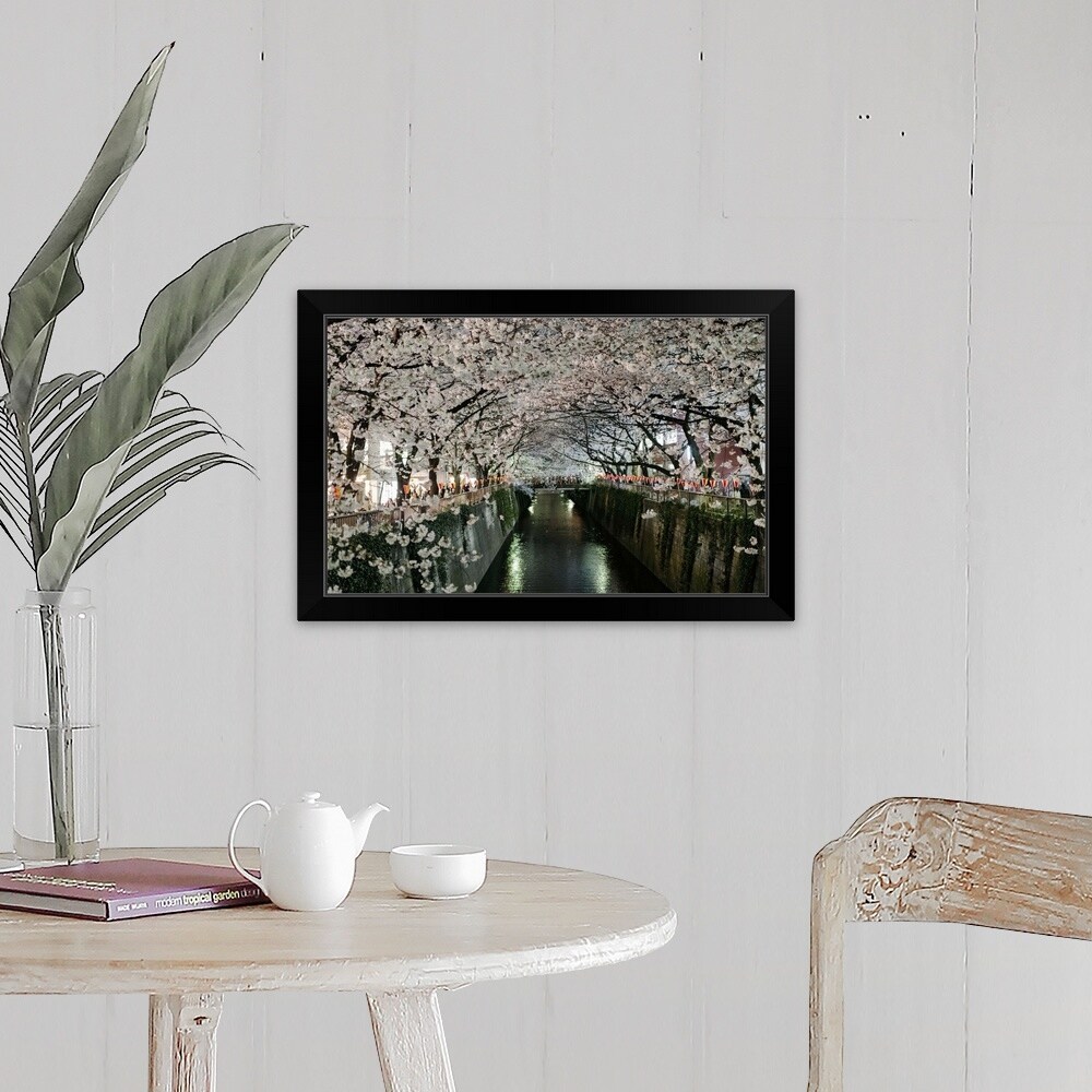 "Cherry blossoms over Meguro River, Tokyo, Japan" Black Framed Print