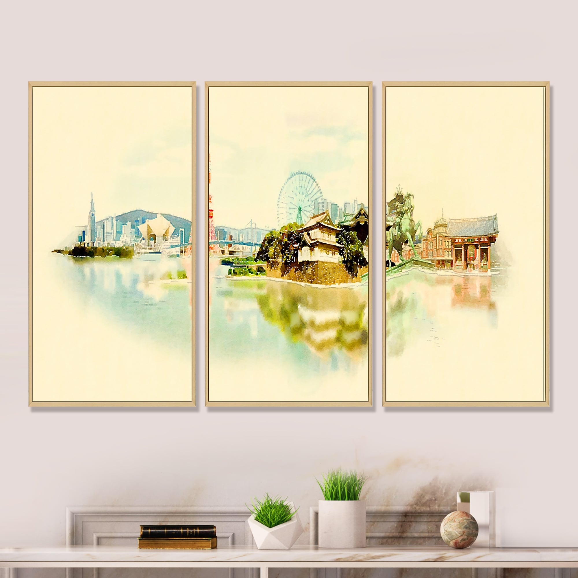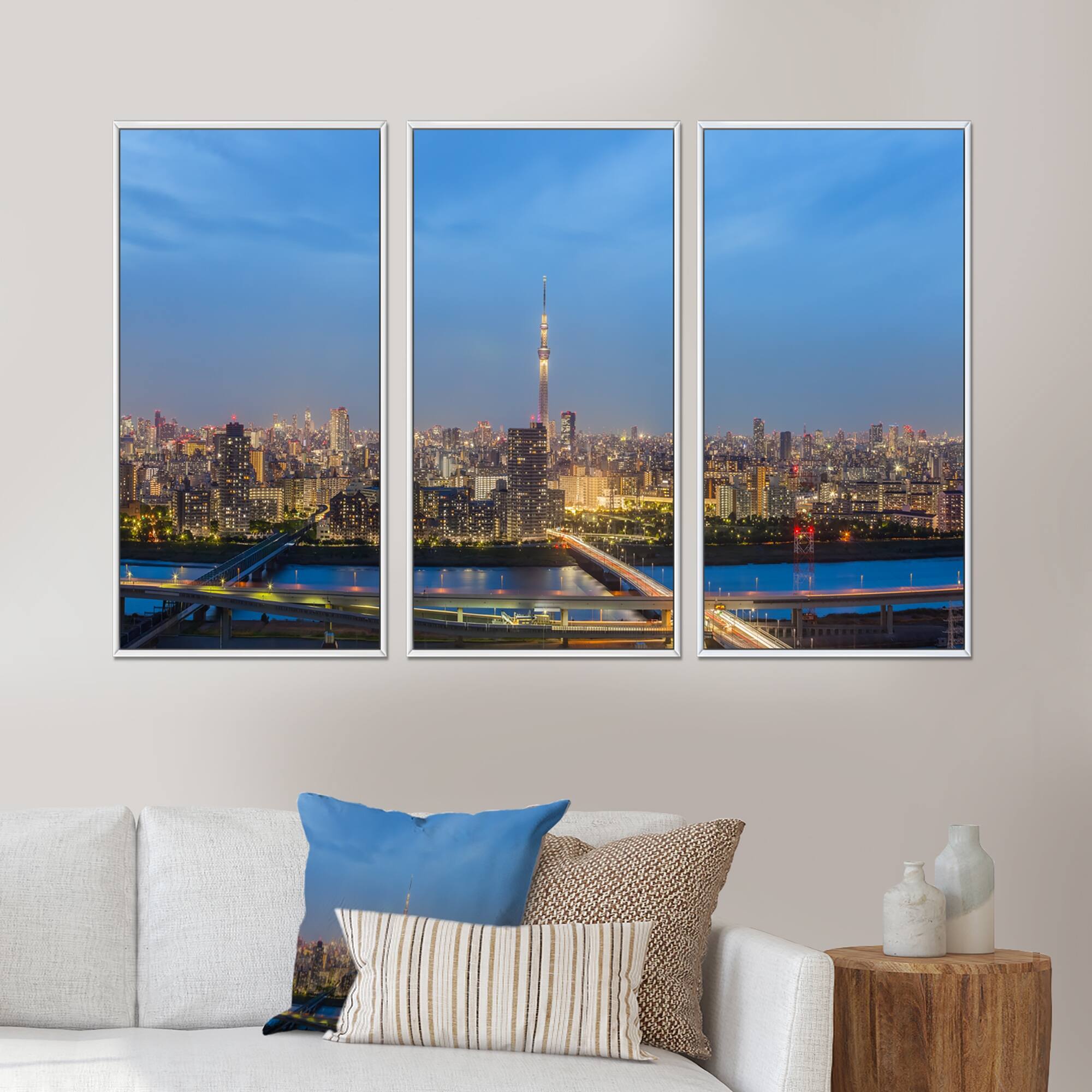 Designart "Tokyo Panoramic View" Cityscape Framed Art Prints Set of 3 - 4 Colors of Frames