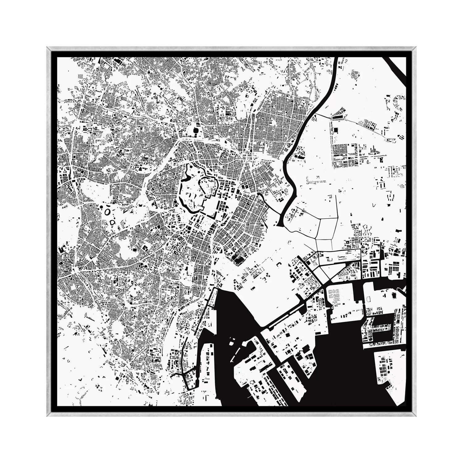 iCanvas "Tokyo Urban Roadway Map (Black)" by Urbanmap Framed Canvas Print